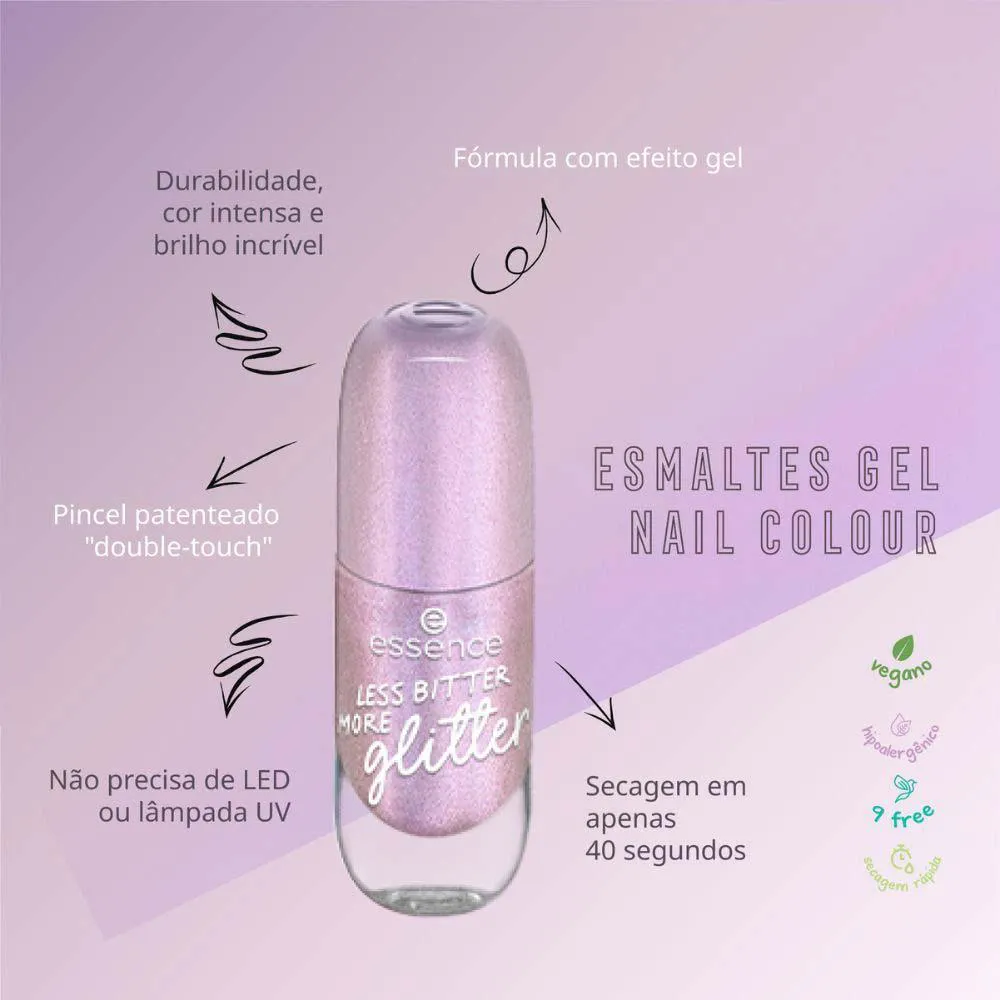 Esmalte Essence com Efeito Gel 58 Less Bitter More Glitter.