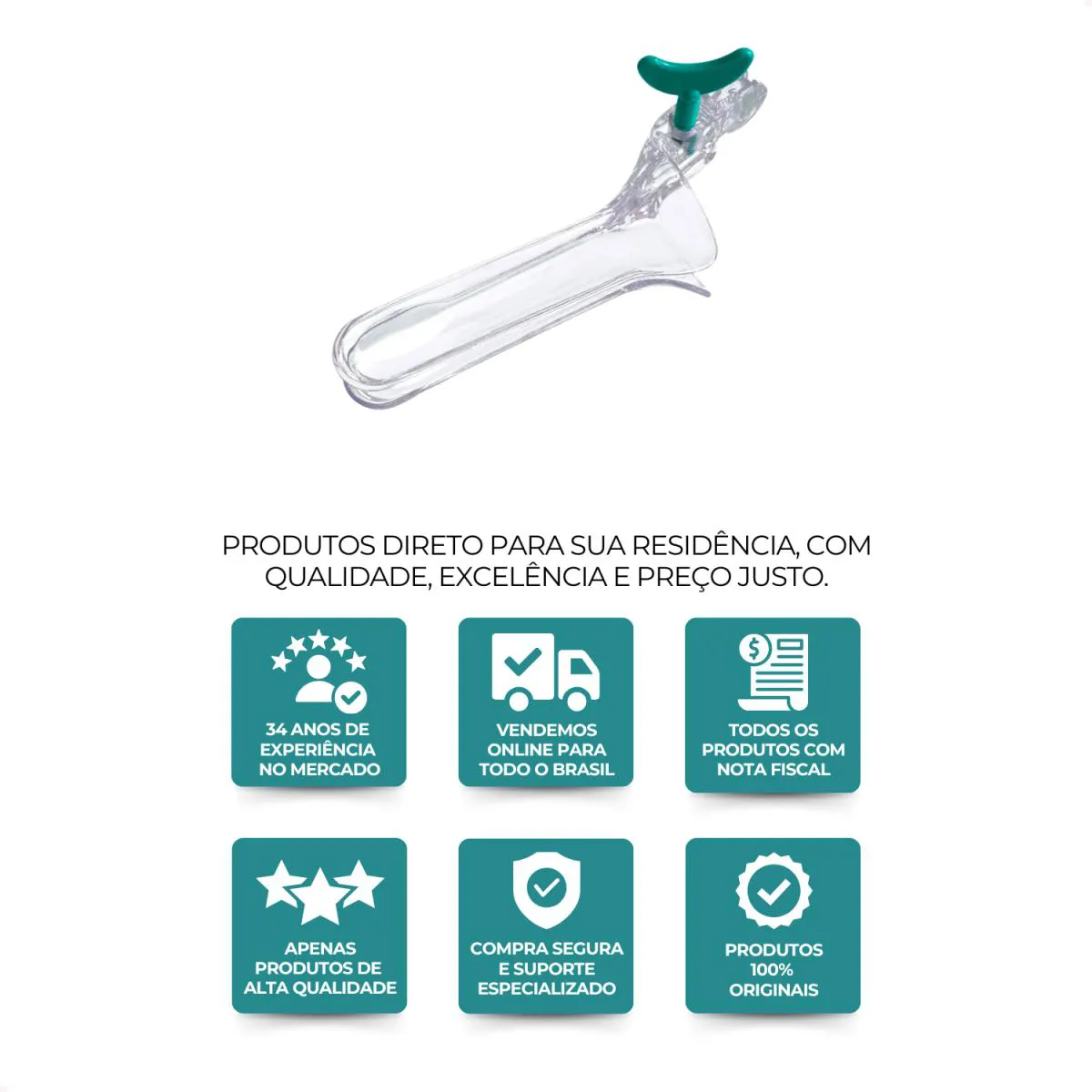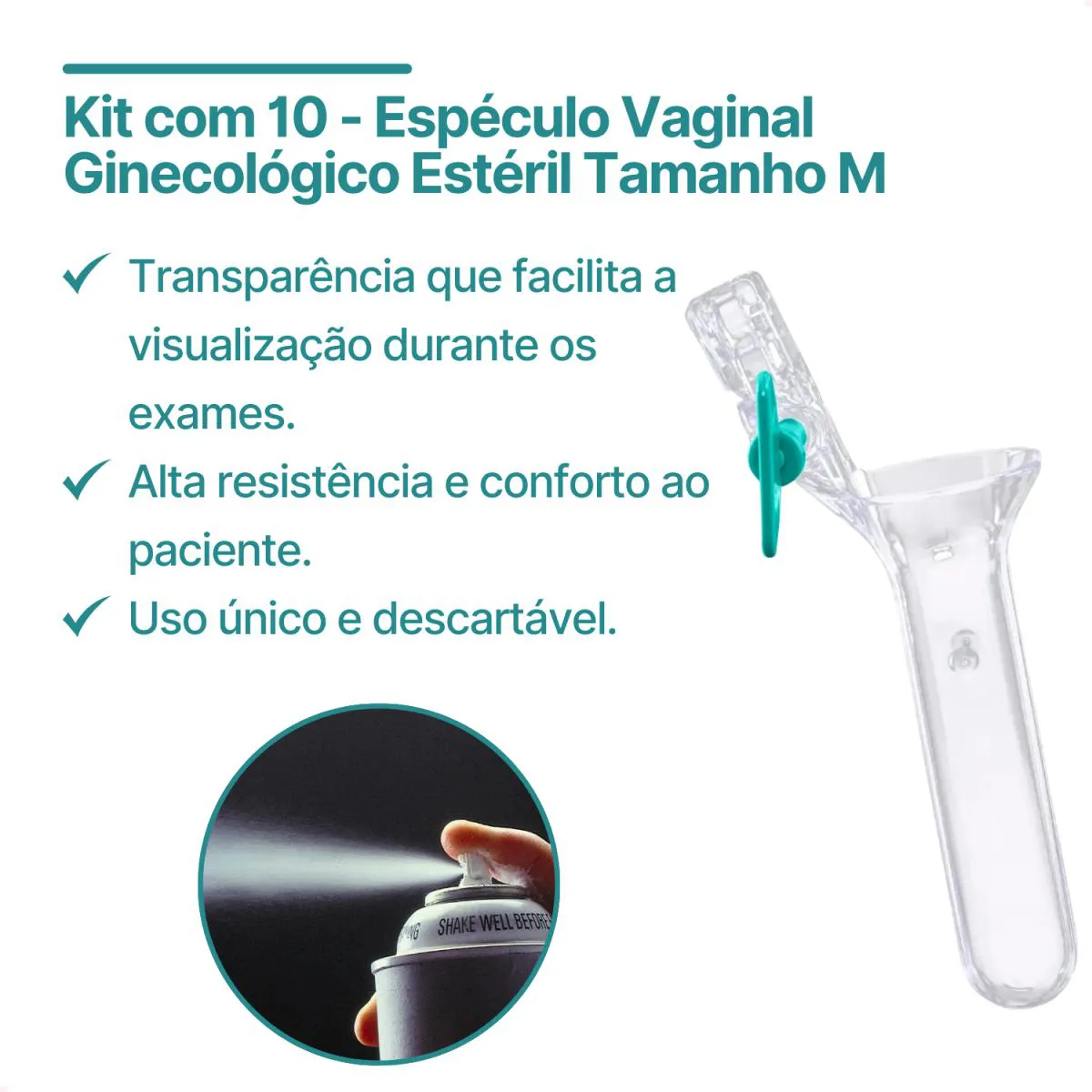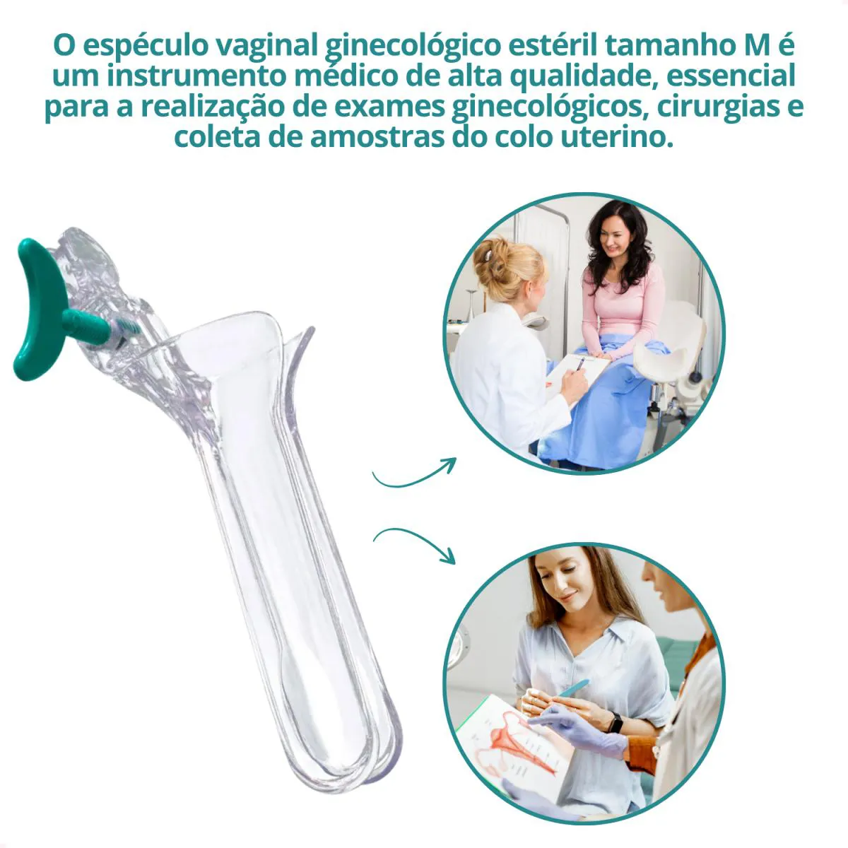 Espéculo Vaginal Ginecológico Estéril e Lubrificado Tamanho M - Pacote com 10 Unidades