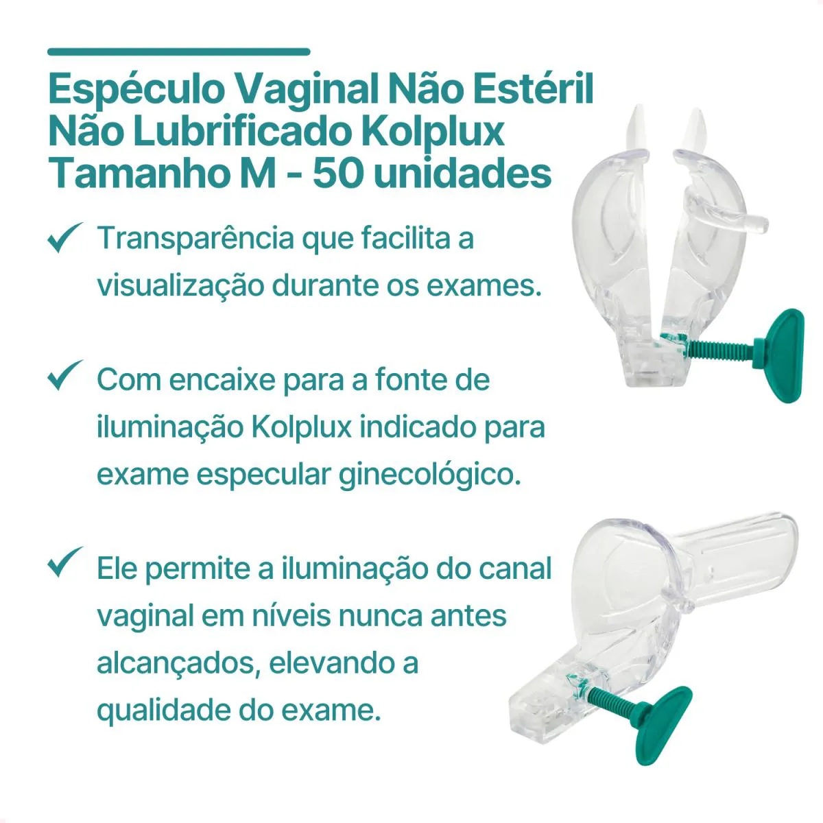 Espéculo Vaginal Não Estéril Não Lubrificado Kolplux Tamanho M - 50 unidades