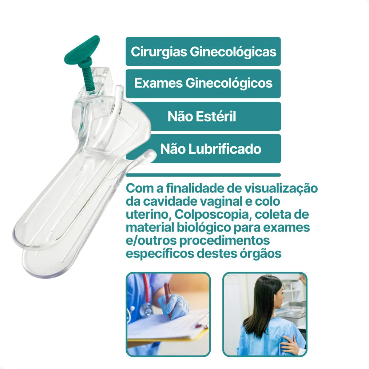 O Espéculo Vaginal descartável modelo Collins com encaixe para a fonte de iluminação Kolplux indicado para exame especular ginecológico, com a finalidade de visualização da cavidade vaginal e colo uterino, Colposcopia, coleta de material biológico para exames e/outros procedimentos específicos destes órgãos ele permite a iluminação do canal vaginal em níveis nunca antes alcançados, elevando a qualidade do exame.