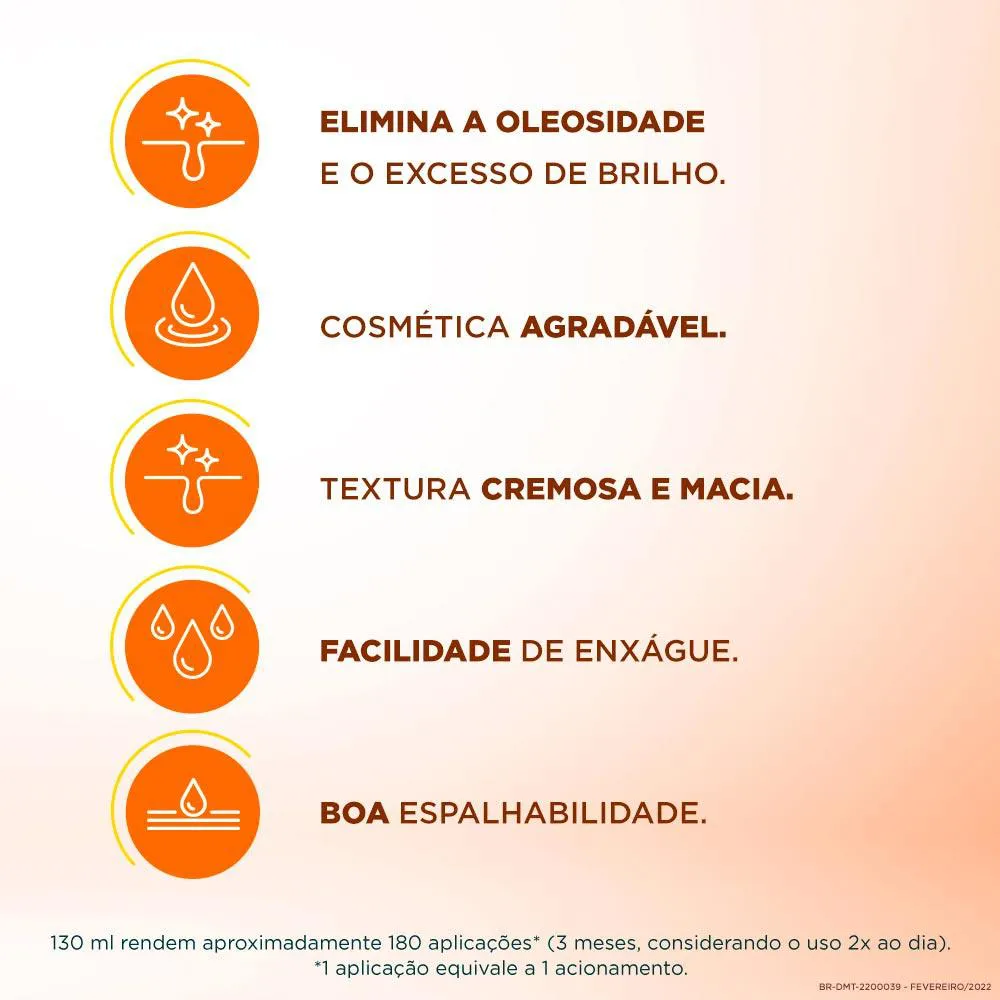Contém Sebaryl™, um complexo formado por substâncias que auxiliam na redução da oleosidade.*