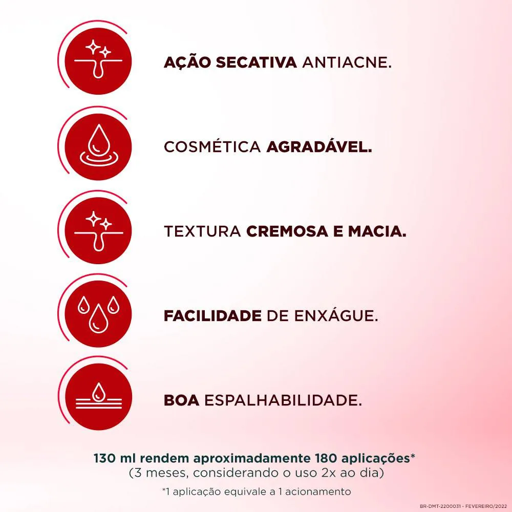 Espuma facial de limpeza que higieniza e possui efeito secativo antiacne.