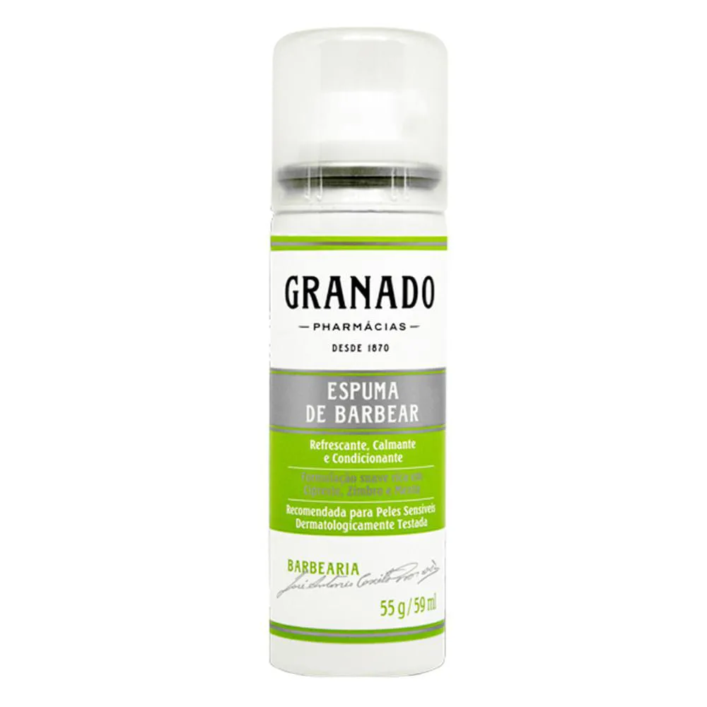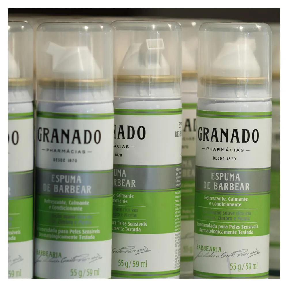 A Espuma para Barbear Granado Barbearia condiciona e amacia os pelos, facilitando o barbear. Revitaliza, refresca e acalma a pele. Disponível em embalagem tamanho viagem. Livre de parabenos e corantes.