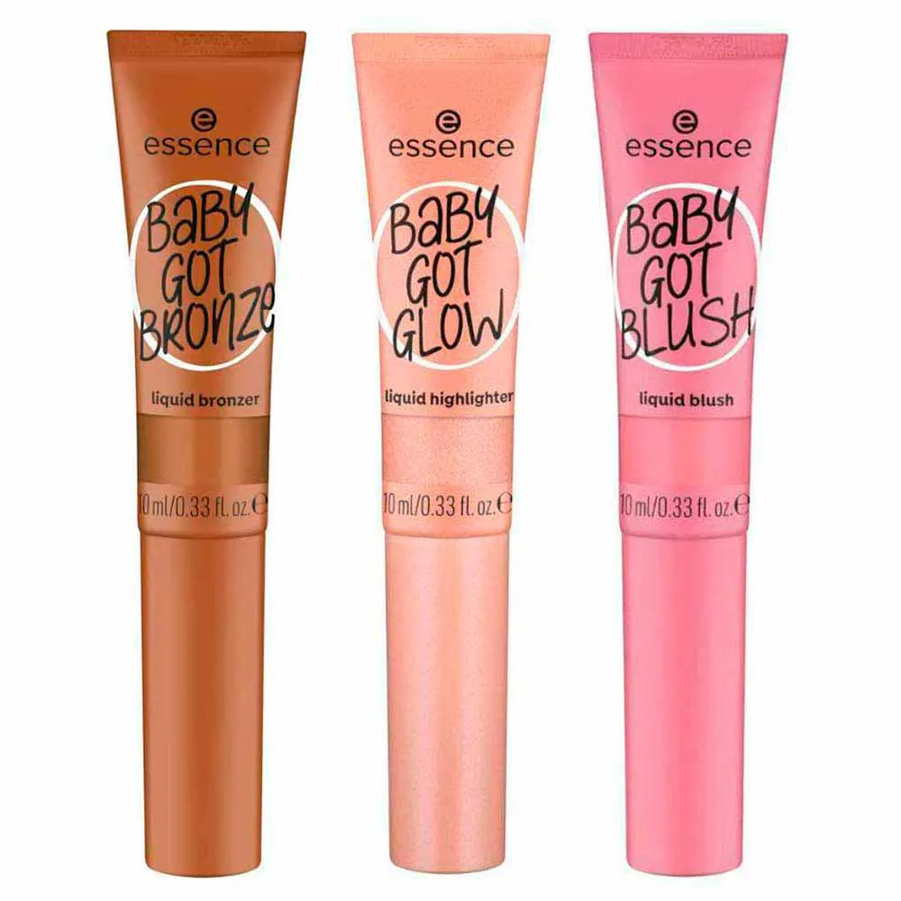 Essence Baby Got Kit - Iluminador Líquido Breezy Bronze + Blush Líquido Dusty Rose + Bronzer Líquido Sunkissed Sweety