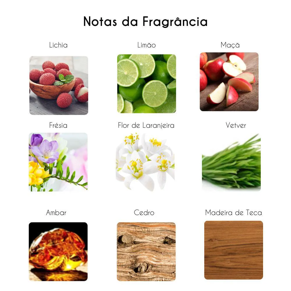 - Aroma revigorante com toques de frutas e flores.