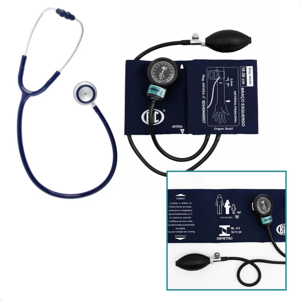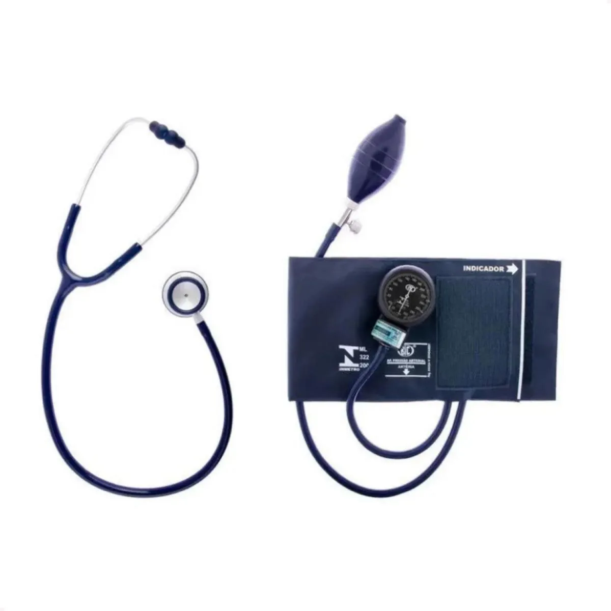 Estetoscópio Duplo Bic com Esfigmomanômetro Bic na Cor Azul