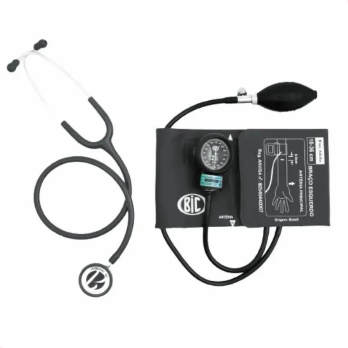 Estetoscópio Duplo Bic com Esfigmomanômetro Bic na Cor Cinza