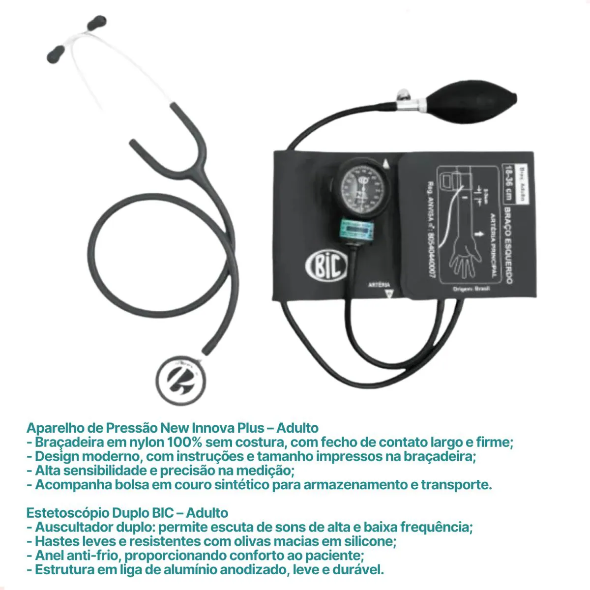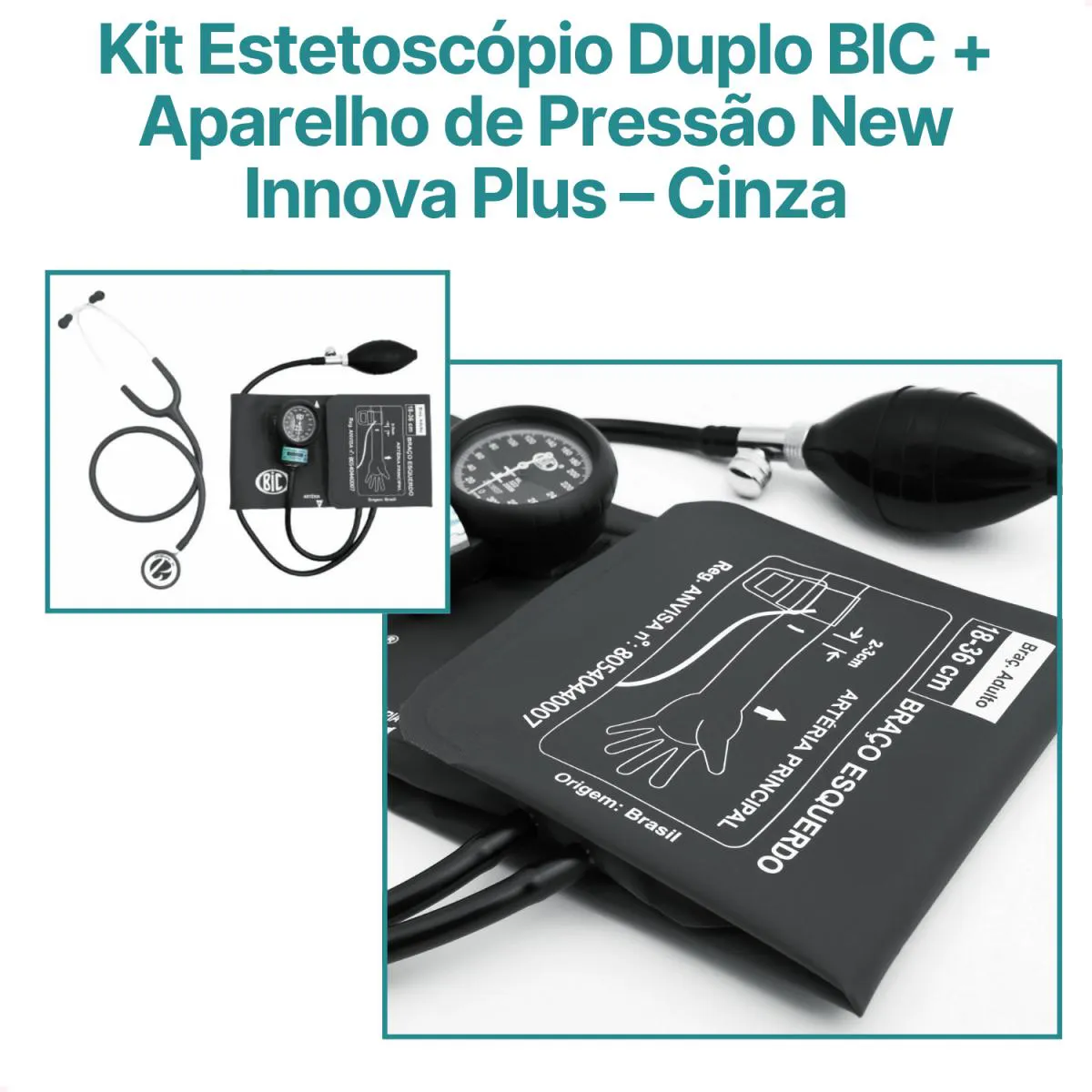 Kit Estetoscópio Duplo BIC + Aparelho de Pressão New Innova Plus - Adulto - Cinza