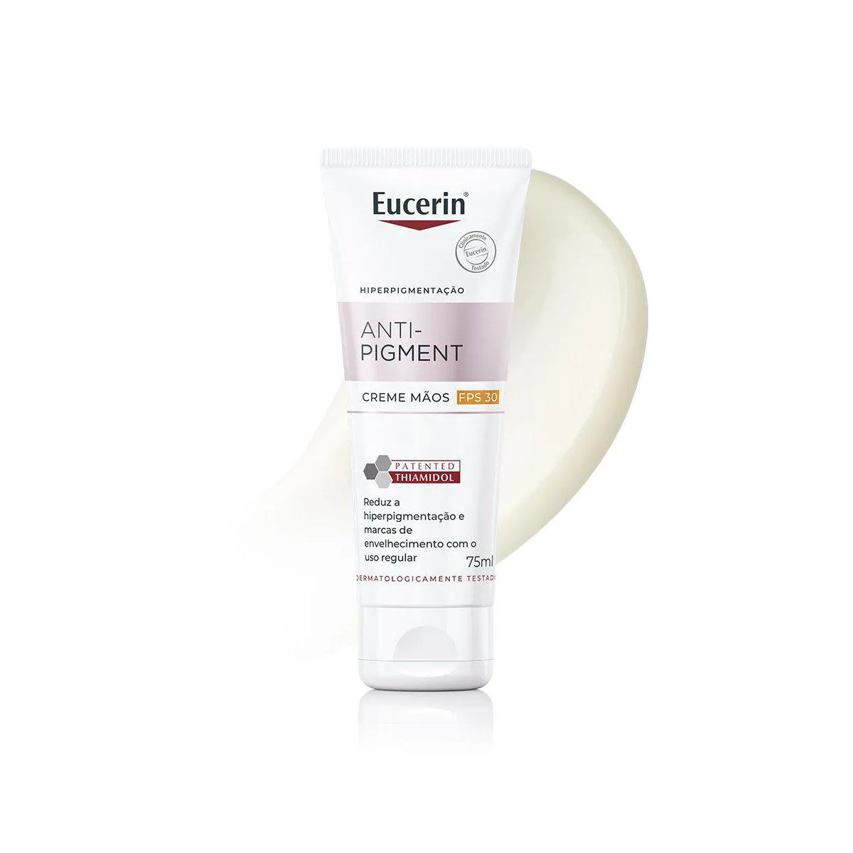 O creme clareador para mãos Eucerin Anti-Pigment é um produto indicado para reduzir a hiperpigmentação e os sinais do envelhecimento. Ele contém o ativo revolucionário patenteado Thiamidol em sua composição que garante uma sensação confortável de pele nutrida durante todo o dia.