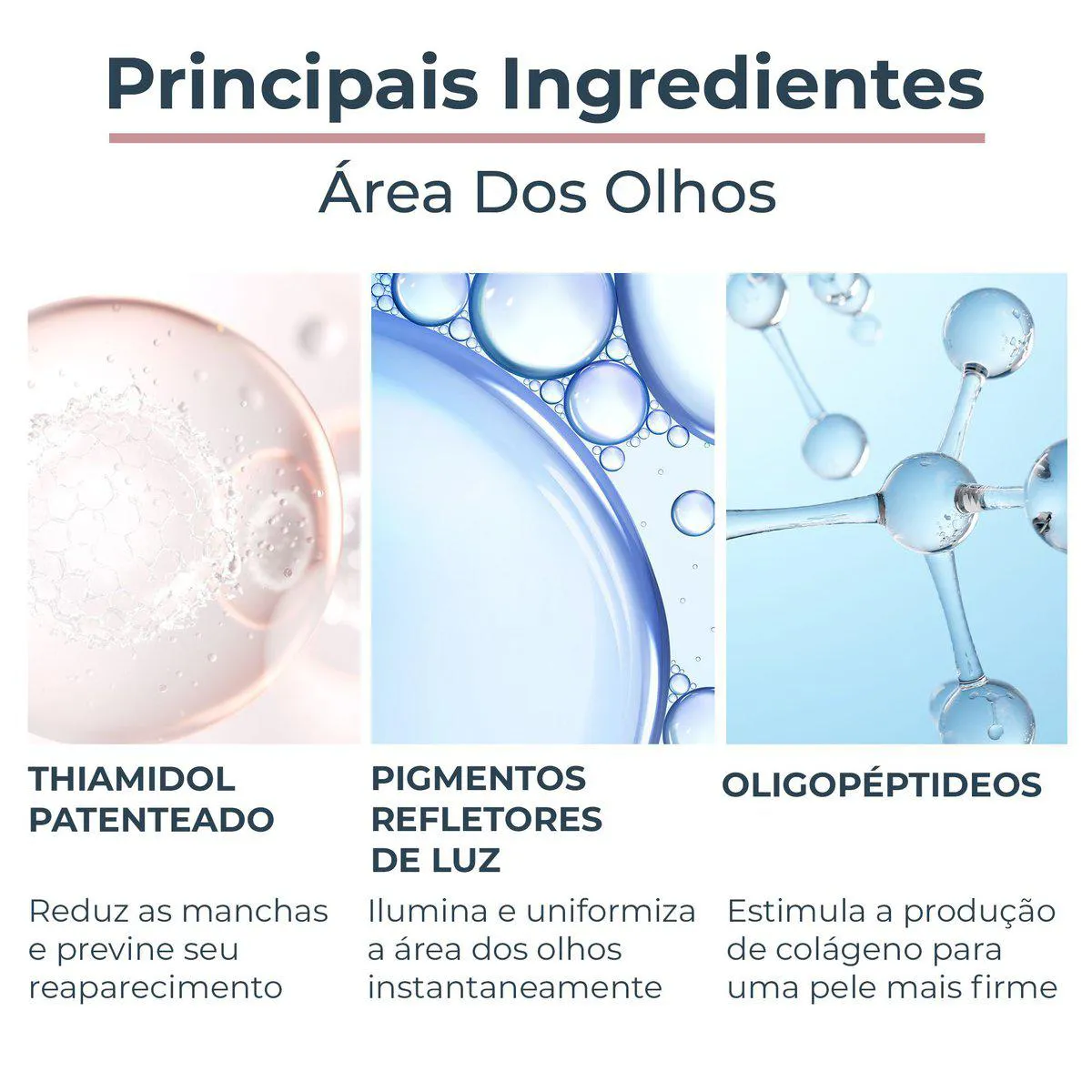- Contém pigmentos refletores de luz que iluminam o contorno dos olhos e uniformizam imediatamente.