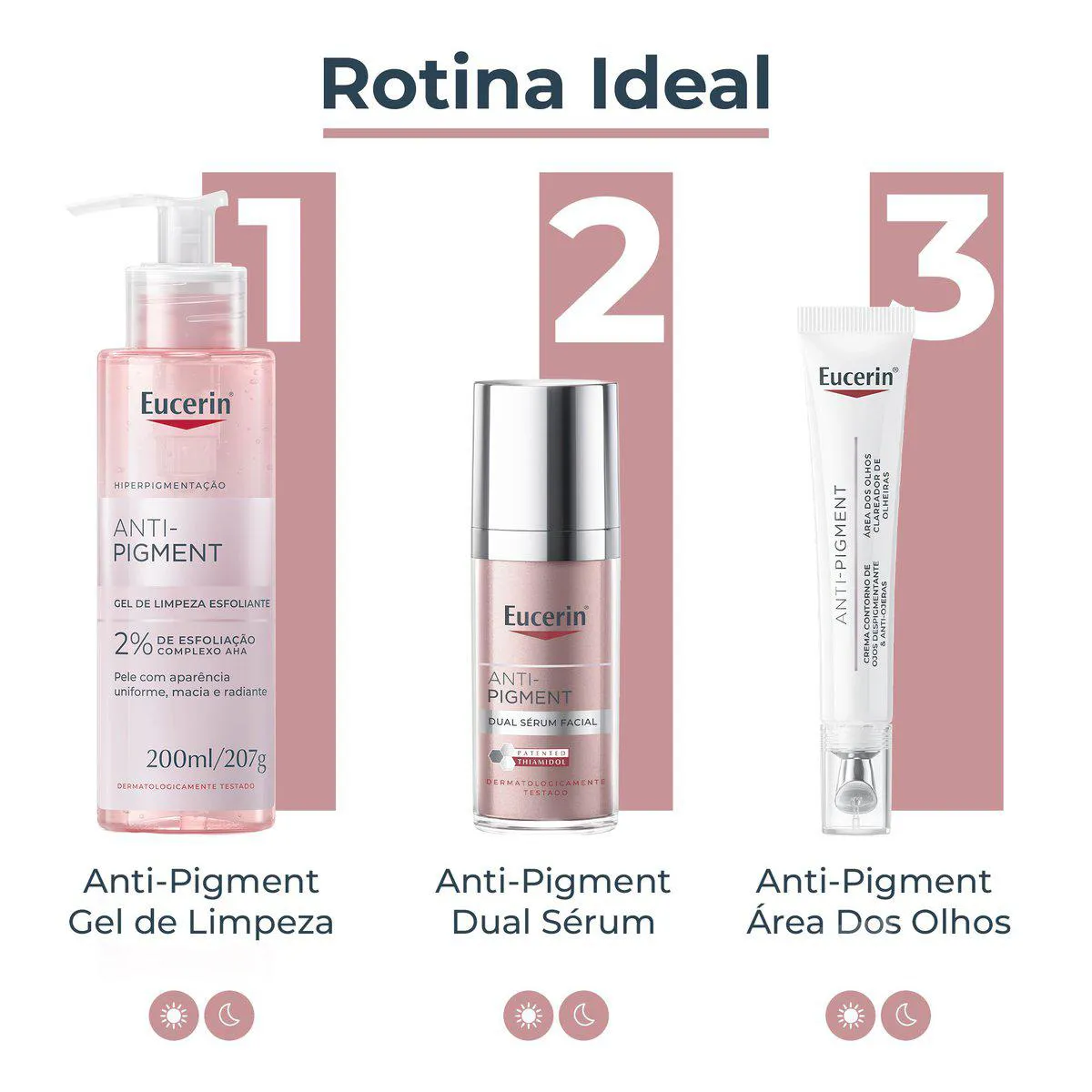 Indicado para quem deseja clarear as olheiras, o uso regular de Eucerin Anti-Pigment ajuda a clarear inclusive olheiras duradouras, com resultados visíveis a partir de duas semanas. Ele também reduz linhas finas e suaviza o inchaço da região, estimula o colágeno da pele para uma estrutura mais firme e conta ainda com pigmentos refletores de luz que iluminam o contorno dos olhos e uniformizam imediatamente.