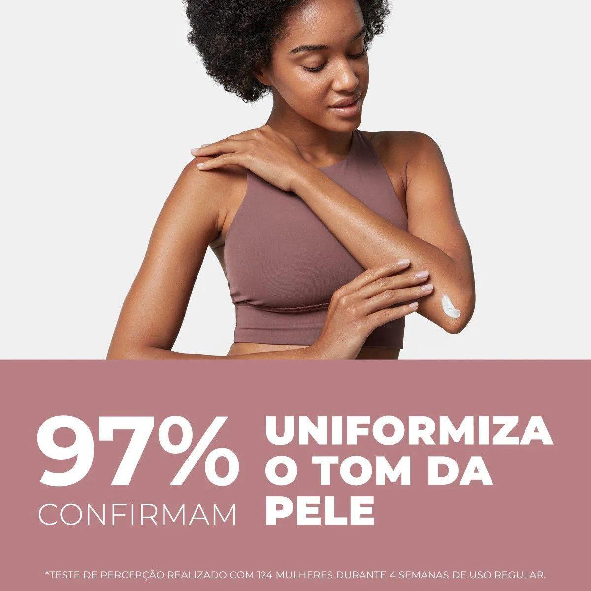 Ativo patenteado que reduz efetivamente as áreas escuras e uniformiza o tom da pele.