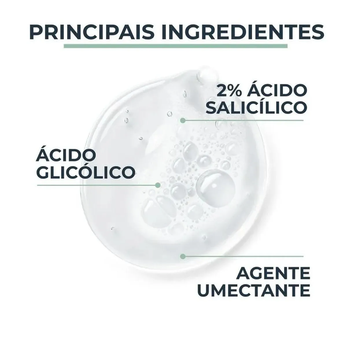 Contém ácido salicílico, com ação antibacteriana e esfoliante suave, além de agentes de limpeza que preservam a barreira natural da pele. Modo de Uso: