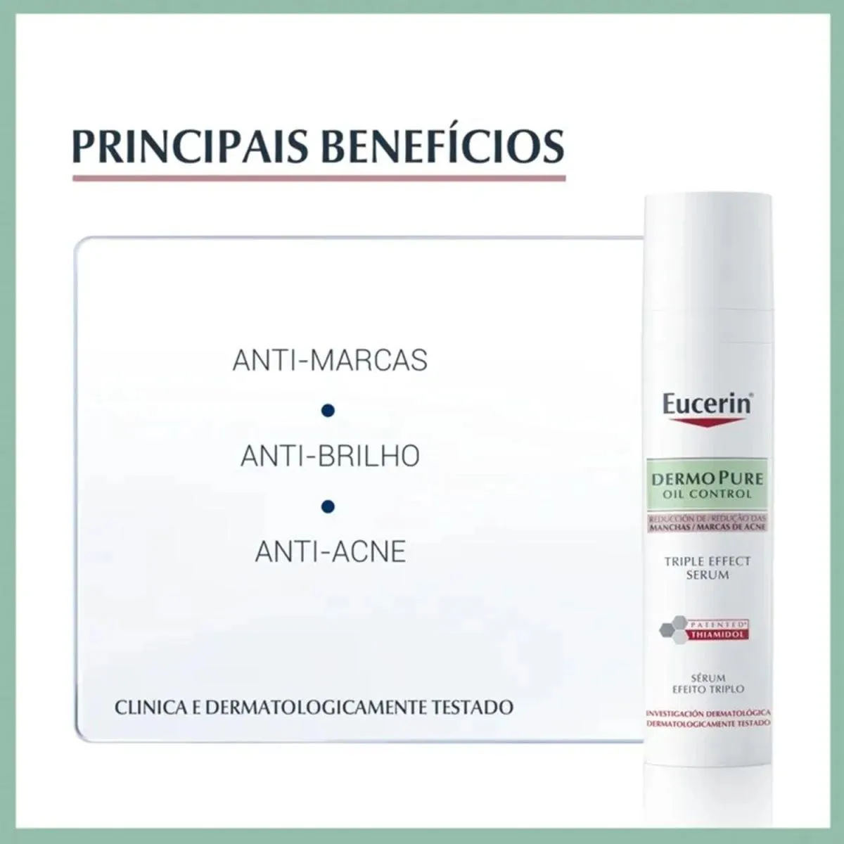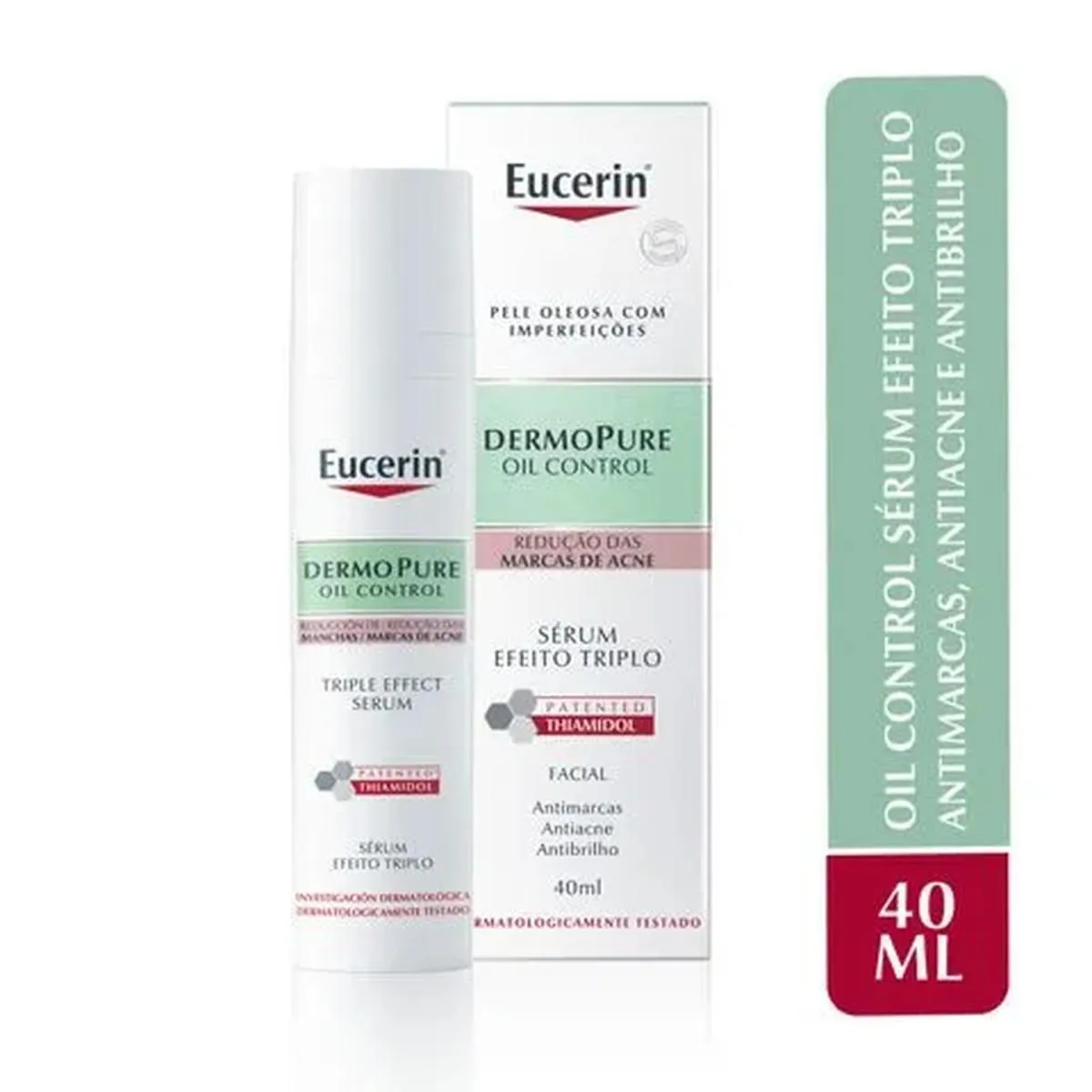 O Eucerin DermoPure Oil Control Sérum Efeito Triplo é um tratamento facial desenvolvido especificamente para peles oleosas e acneicas, com uma fórmula que combina ácido salicílico, Licochalcona A e Thiamidol. Seu objetivo principal é tratar e melhorar a condição da pele, reduzindo imperfeições, controlando a oleosidade e uniformizando a textura cutânea.