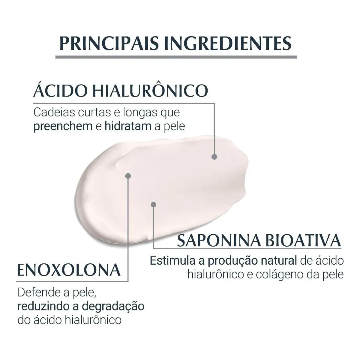 Ácido hialurônico de alto e baixo peso molecular, saponina bioativa, FPS30 e ingredientes hidratantes. Faixa Etária