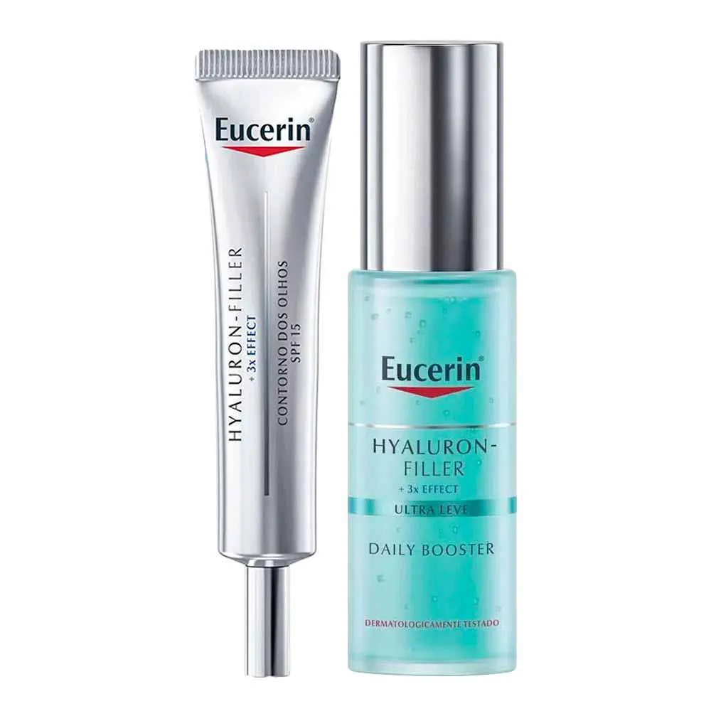 O Eucerin Hyaluron Filler Daily Booster Kit é a combinação perfeita para quem busca um cuidado anti-idade completo e eficaz. Este kit traz dois produtos essenciais: o Gel Hidratante Hyaluron Filler Daily Booster e o Creme Facial Hyaluron-Filler Olhos FPS 15, ambos formulados com Ácido Hialurônico que penetram profundamente na pele para preenchimento das rugas, hidratação intensa e fortalecimento da barreira cutânea.