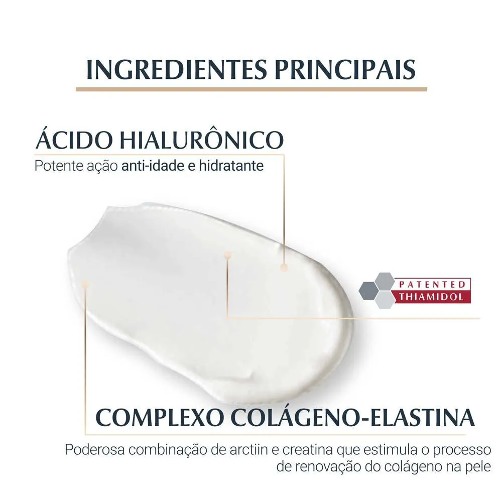 - Combinação de Ácido Hialurônico, Thiamidol patenteado Eucerin e Complexo Colágeno-Elastina.