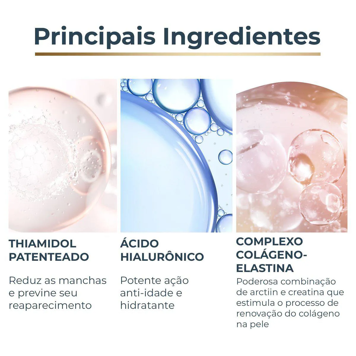 Aplique duas vezes ao dia com a pele limpa, no rosto, no pescoço e no colo, massageando suavemente.