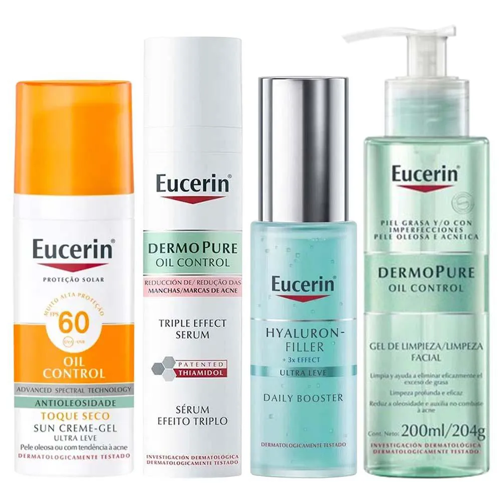 Descubra a revolução no cuidado com a pele oleosa e mista com o Eucerin Kit, composto por Gel de Limpeza, Sérum, Protetor Solar Facial e Gel Hidratante.