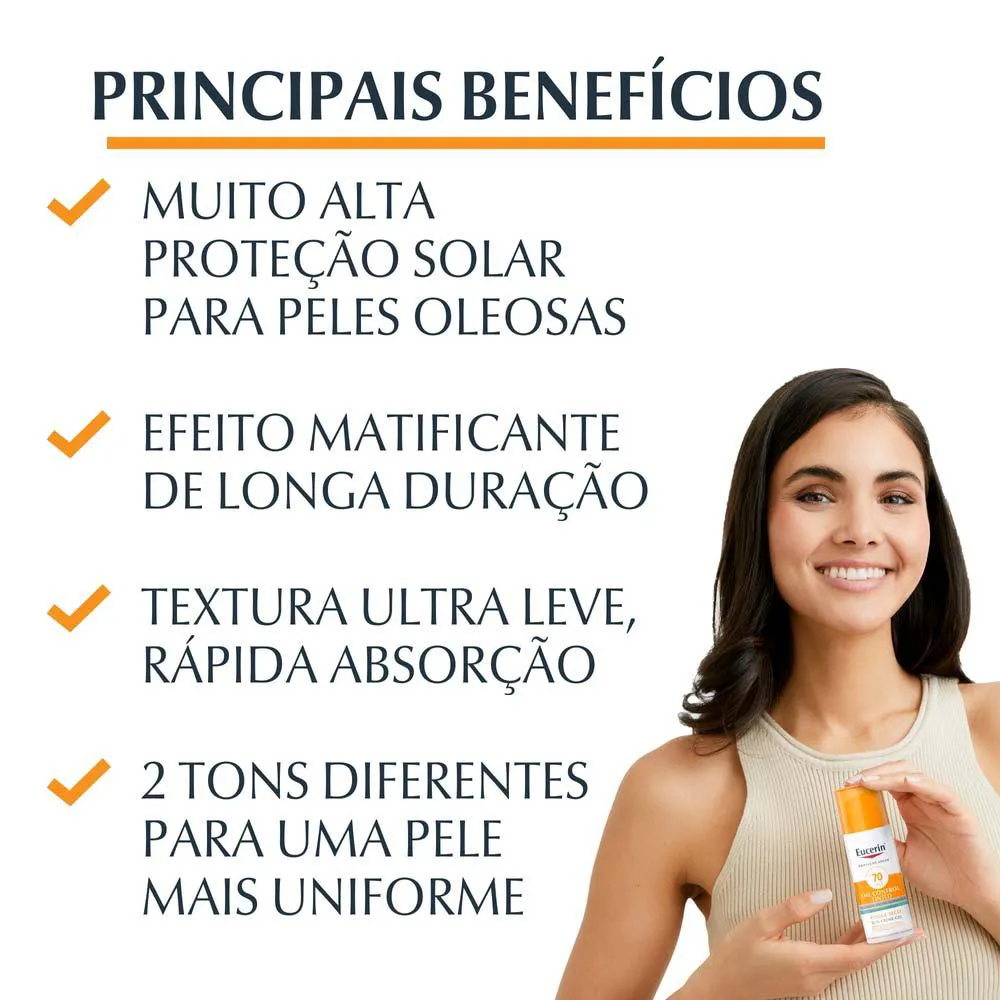 Quais os Benefícios do Eucerin Sun Oil Control Tinted Médio FPS70 Creme Facial?