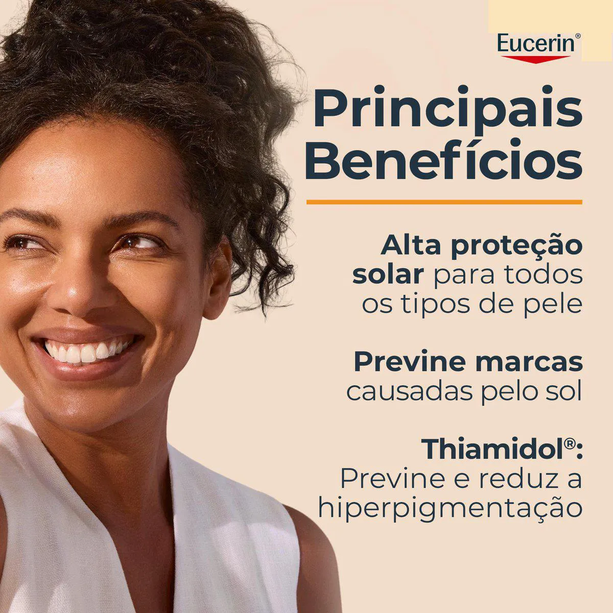 O Eucerin Sun Pigment Control Tinted é um protetor solar facial da linha Eucerin Sun, com pigmentação e FPS 70, desenvolvido com filtros UVA/UVB, Licochalcona e tecnologia Advanced Spectral. Sua fórmula contém Thiamidol, um ativo patenteado que atua na causa da hiperpigmentação. Serve para proteger a pele contra raios solares, reduzir áreas hiperpigmentadas, combater radicais livres causados pela exposição à luz visível e uniformizar o tom da pele. O produto protege as camadas mais profundas da epiderme, ajuda na renovação dos mecanismos de defesa naturais do DNA celular e previne o reaparecimento de manchas com o uso contínuo.