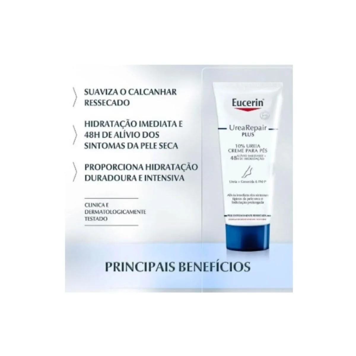 Eucerin UreiaRepair Plus Hidratação prolongada e alívio imediato da pele extremamente seca. Atenua calos e suaviza calcanhares grossos. Para todos os tipos de pele, até mesmo as mais maduras. Sem aroma. Não fica gorduroso. Possui rápida absorção. Testado clinicamente e dermatologicamente.