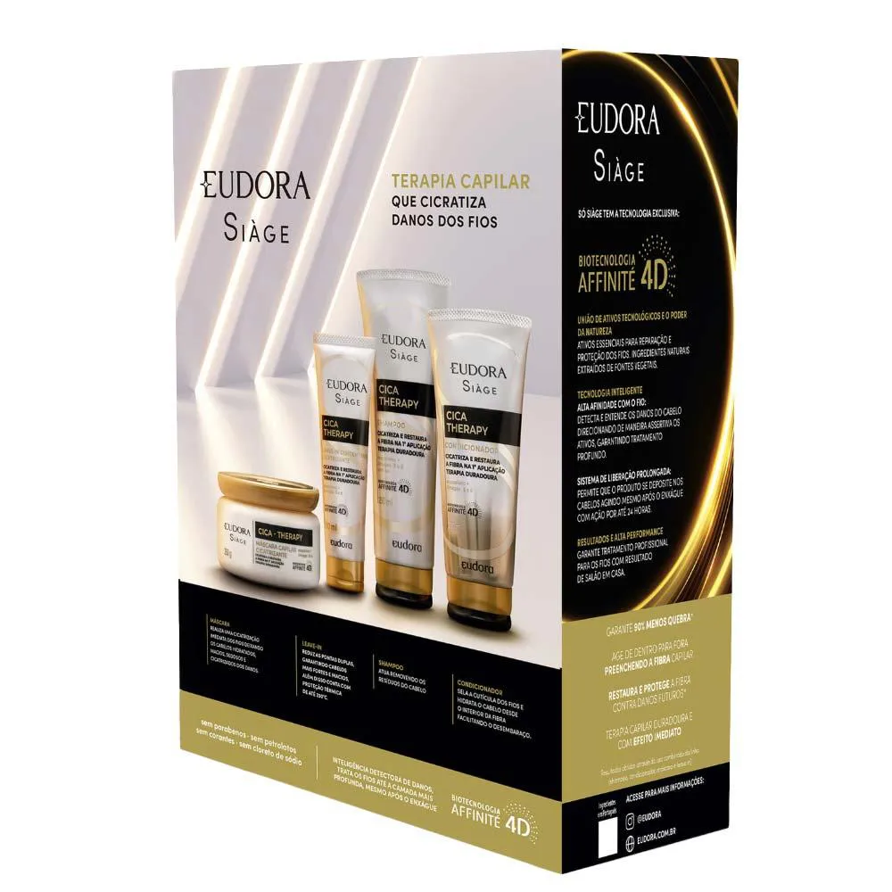O shampoo Siàge Cica-Therapy faz uma limpeza gentil que limpa as madeixas suavemente sem ressecar. máscara para cabelos danificados. Eudora Siàge Cica Therapy recupera os danos e repõe nutrientes essenciais, garantindo cabelos fortes e hidratados desde a 1ª aplicação.