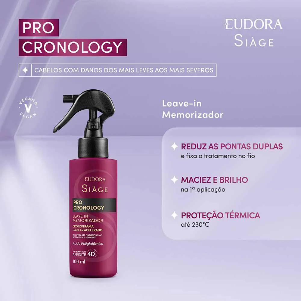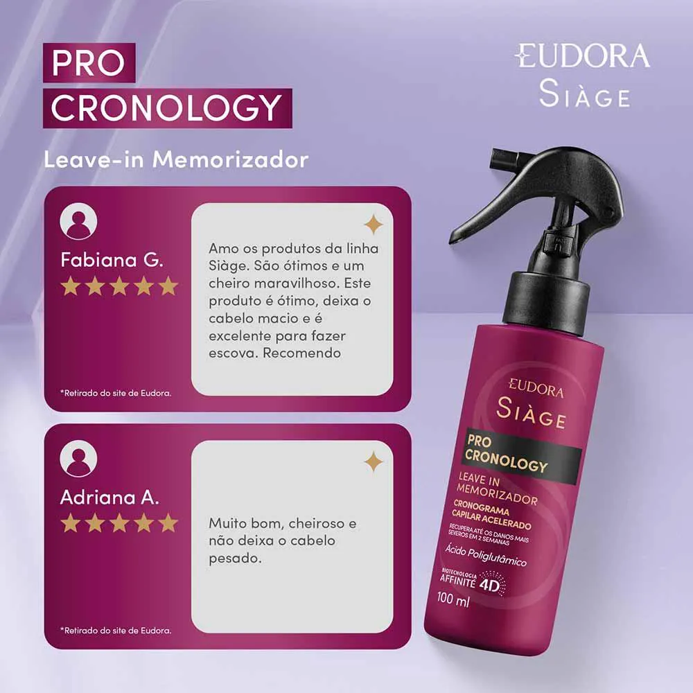 Siàge Leave In Pro Cronology como finalizador, prolonga o efeito da reconstrução do fio mesmo depois do término do cronograma capilar.