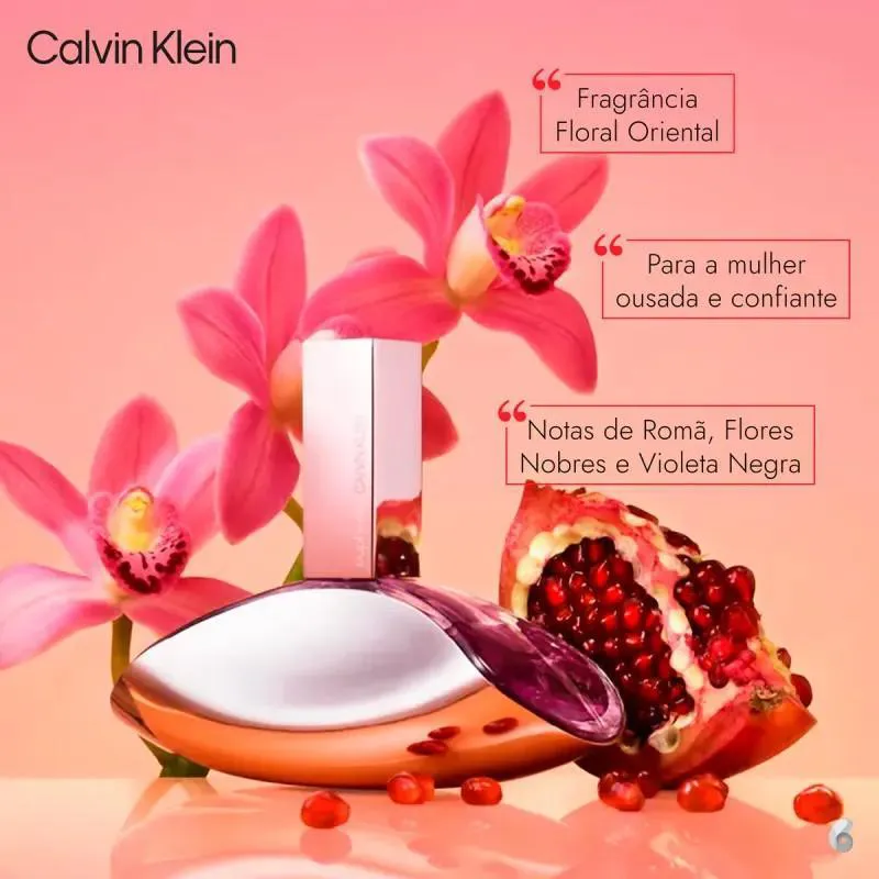 Euphoria é um perfume Calvin Klein feminino floral oriental. Extremamente marcante, traz uma fragrância sensual, luxuosa e sofisticada para a mulher ousada e confiante. O Perfume Euphoria, de Calvin Klein, remete a uma viagem sem limites em busca da liberdade de um sonho, que representa o modernismo estético: beleza e luxo associados a sensualidade. Euphoria Calvin Klein é inspirado na Orquídea, uma das flores mais sedutoras e enigmáticas do mundo. Uma mistura envolvente de aromas deliciosos que revelam a beleza mais íntima da mulher.