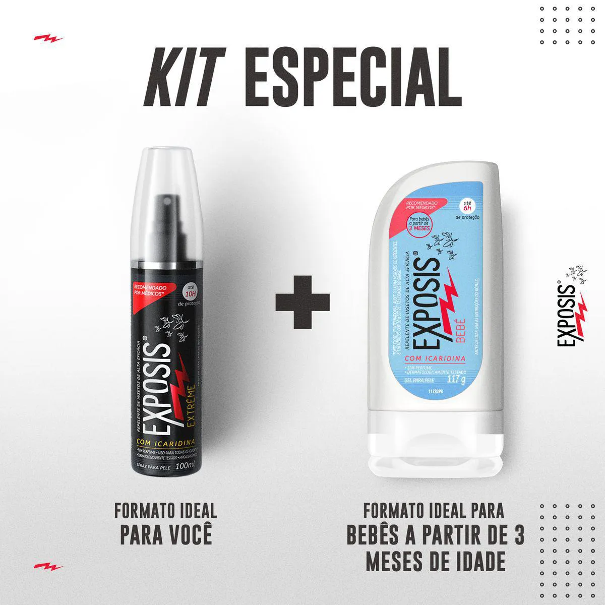 Kit Repelente Exposis Extrême Spray Icaridina 100ml + Exposis Bebê Gel Icaridina 117g