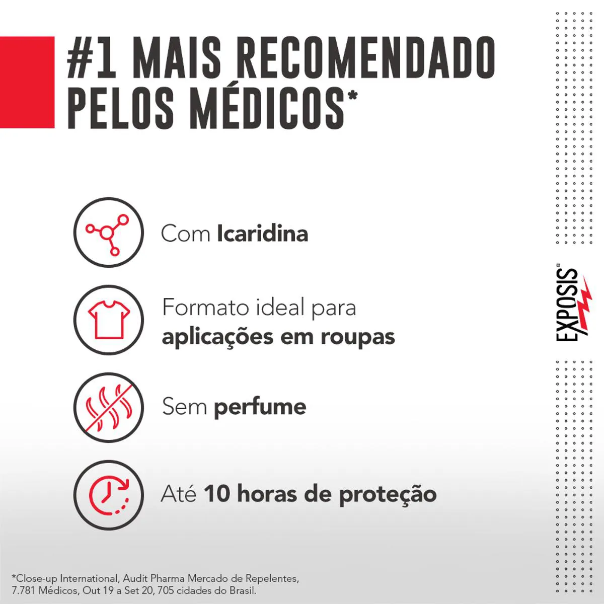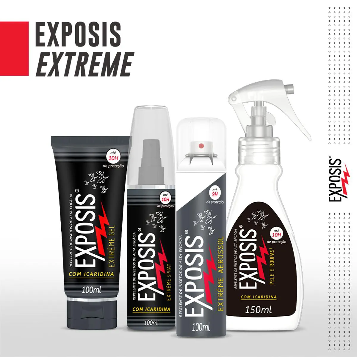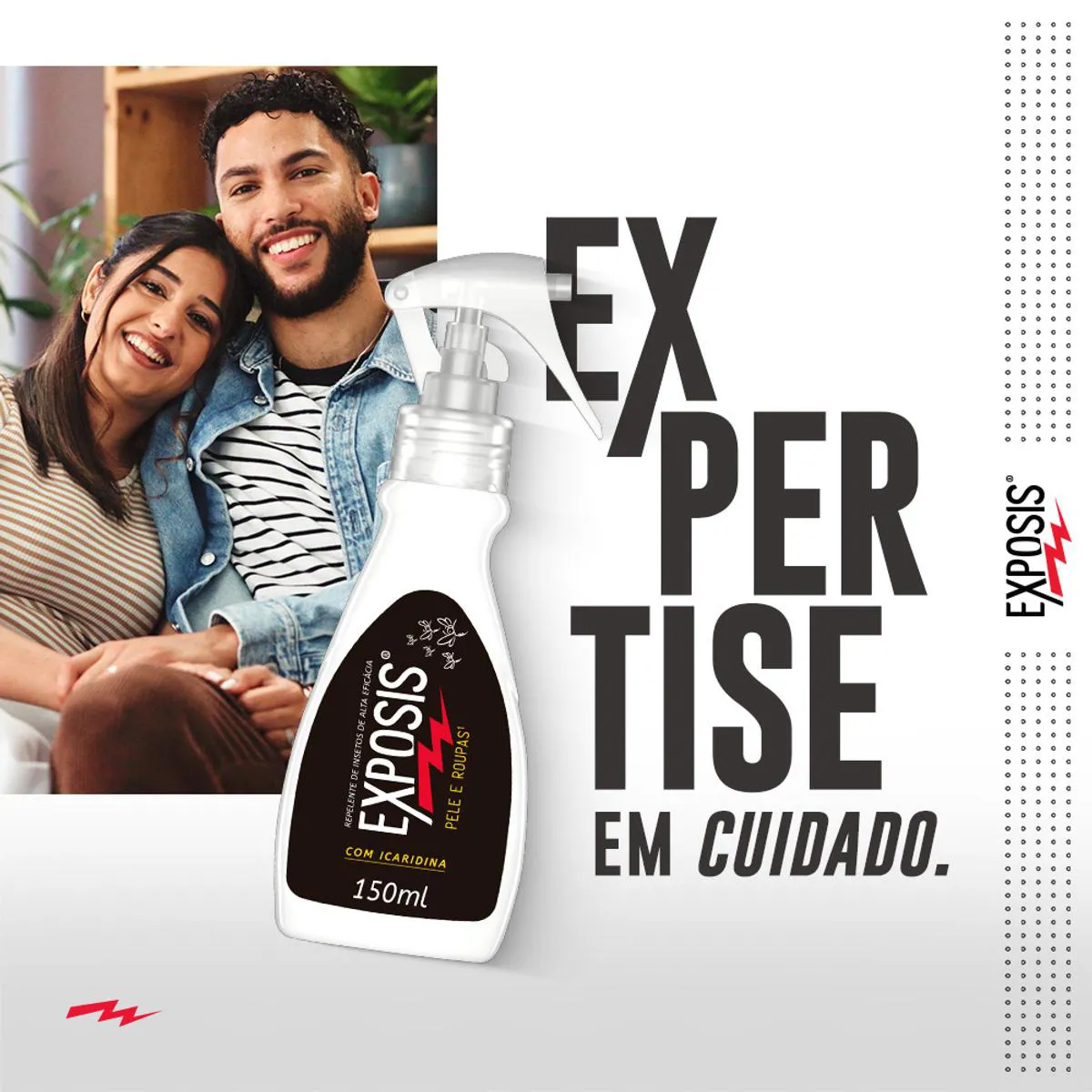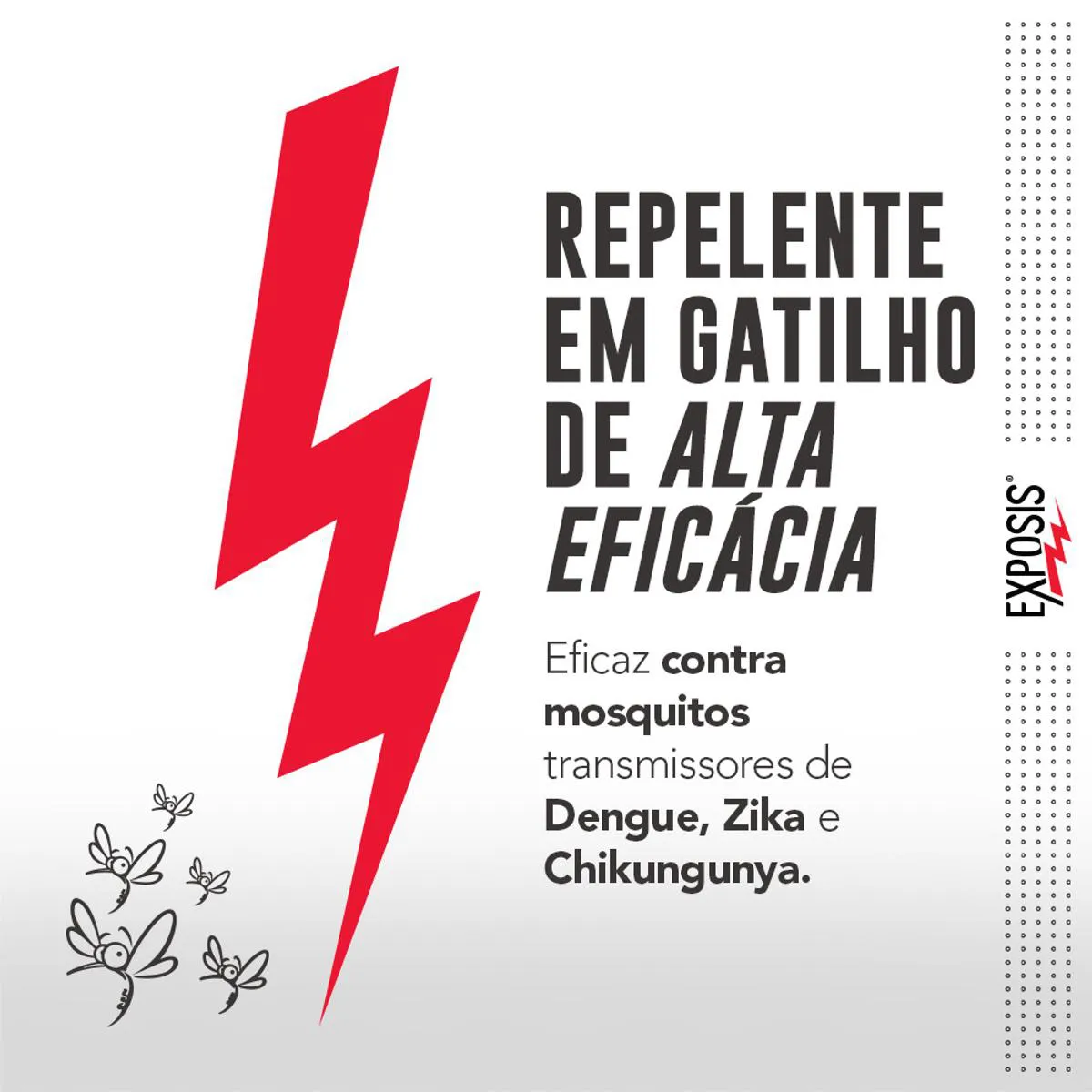 O Exposis é um repelente em spray com 25% de icaridina, uma substância hipoalergênica, desenvolvido para proteção contra picadas de insetos. Serve para repelir insetos transmissores de doenças como dengue, zika, chikungunya, febre amarela, malária e filariose, oferecendo até 10 horas de proteção diária quando aplicado corretamente. É indicado para uso em pele de adultos e crianças a partir de 6 meses, sendo ideal para atividades ao ar livre e proteção contra mosquitos como Aedes aegypti, Aedes albopictus, Anófeles e Culex.