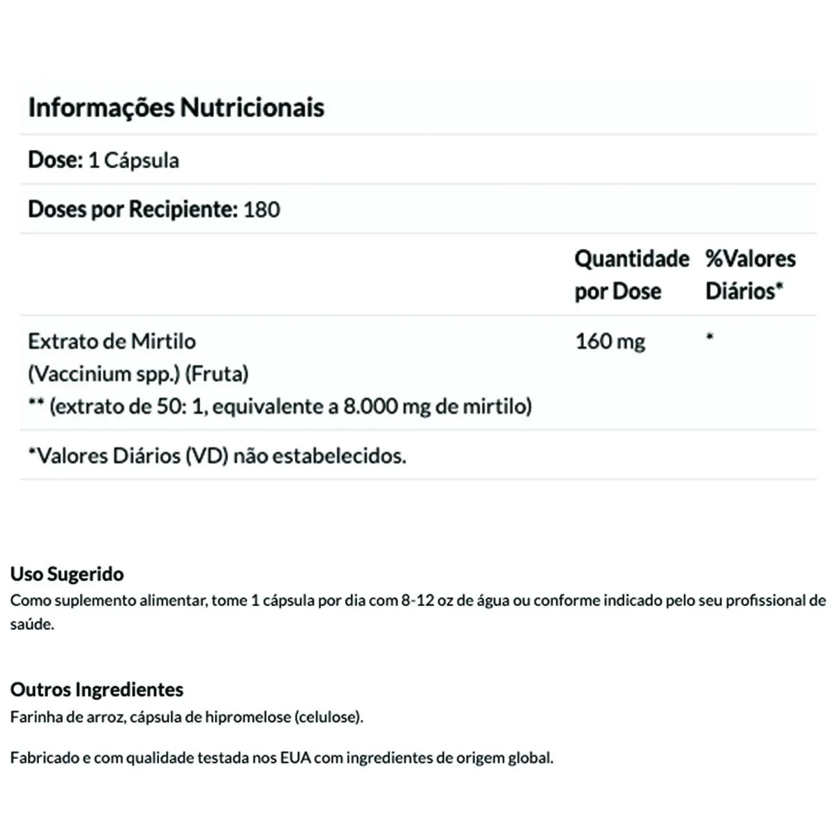 Extrato de Mirtilo Blueberry 160 Mg 180 Cápsulas Nutricost