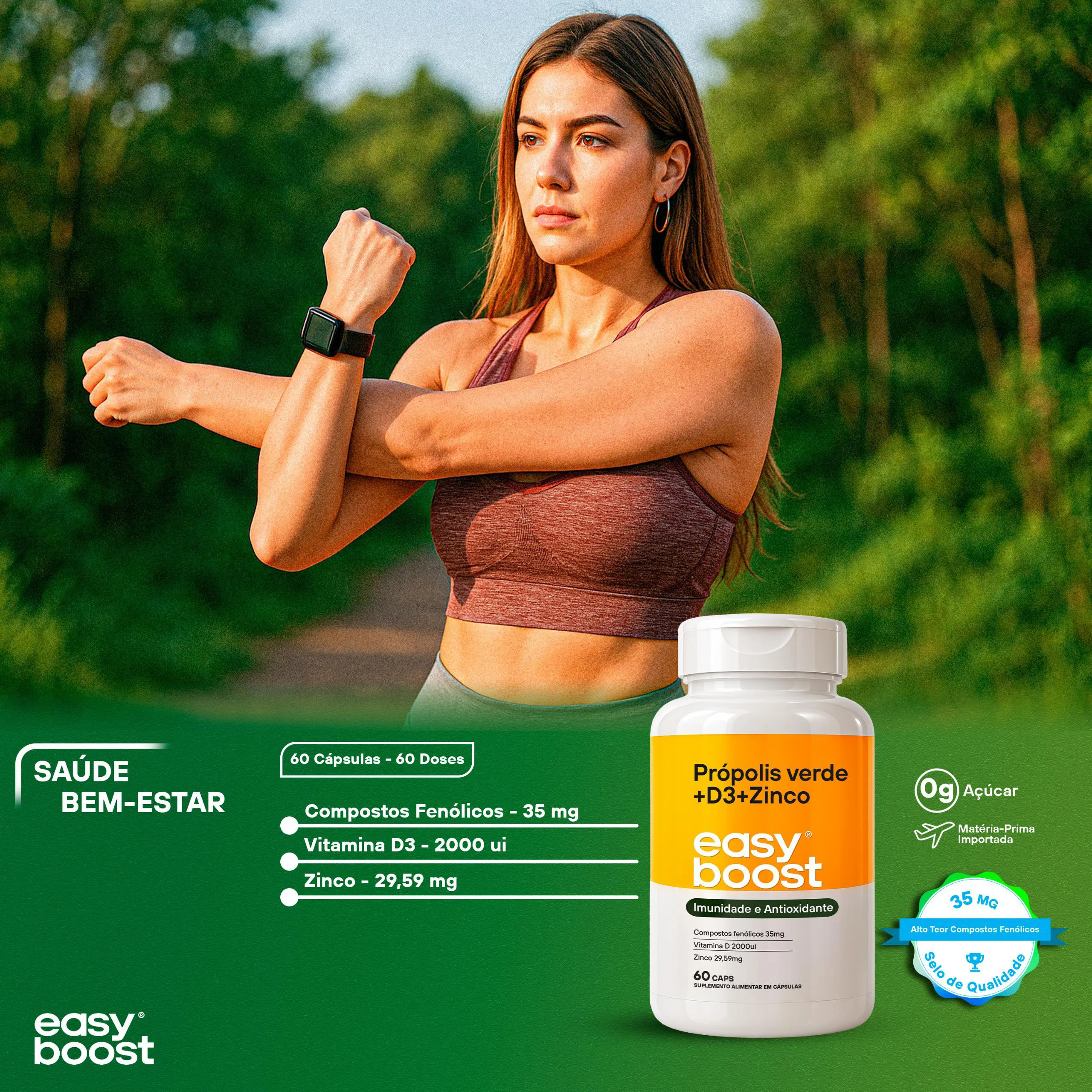- Suplemento com própolis verde, vitamina D3 e zinco.