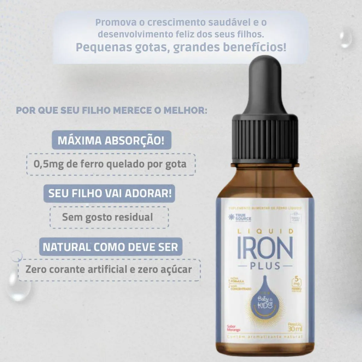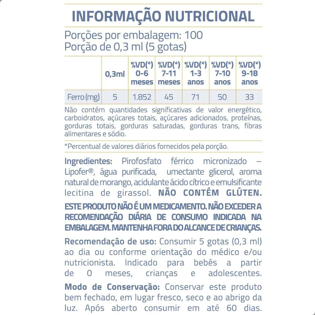 - Suplemento de ferro em formato líquido com alta praticidade de uso diário.