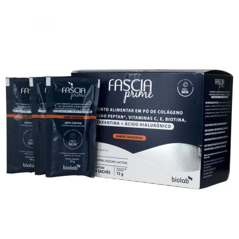 FASCIA PRIME COLáGENO EM Pó SABOR TANGERINA BIOLAB - 30 SACHêS DE 13G