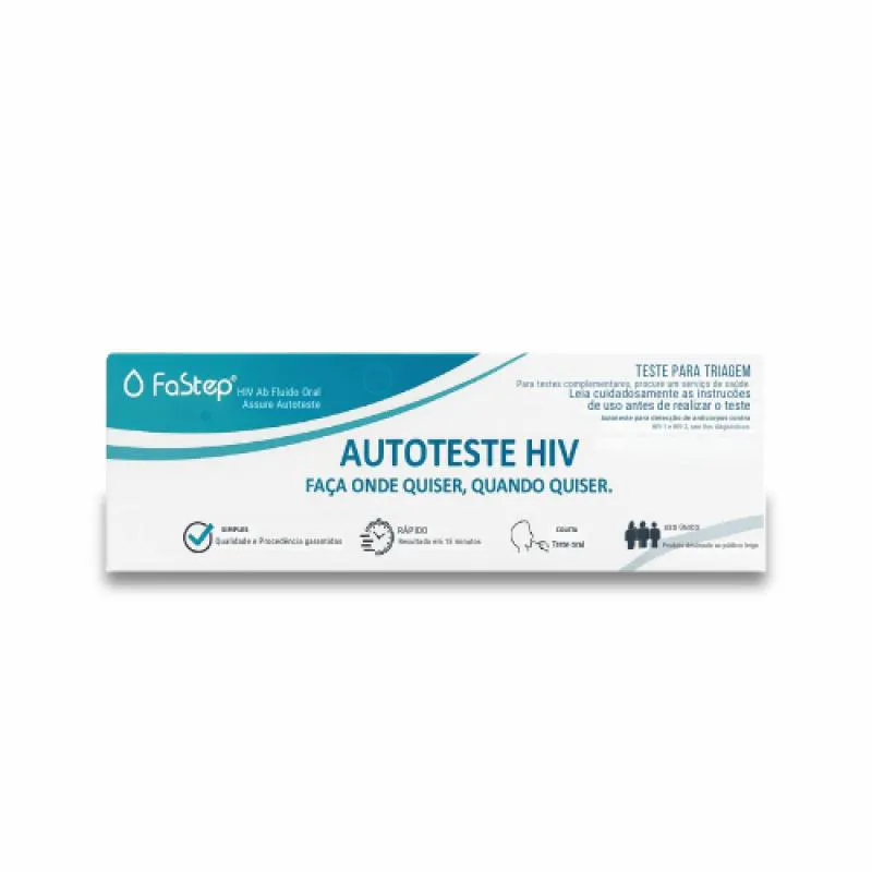 - O FaStep HIV Ab Fluido Oral Assure é um autoteste rápido e confiável para detecção de anticorpos do HIV (tipos 1 e 2) por meio de amostra de fluido oral, sem necessidade de agulhas ou sangue. Ideal para uso individual e confidencial, oferece resultado em poucos minutos, com alta precisão e facilidade de uso. Desenvolvido com tecnologia de imunoensaio cromatográfico, o FaStep detecta a presença de anticorpos do HIV, auxiliando na identificação precoce da infecção e possibilitando o início rápido do acompanhamento médico e tratamento adequado, caso necessário. Benefícios: