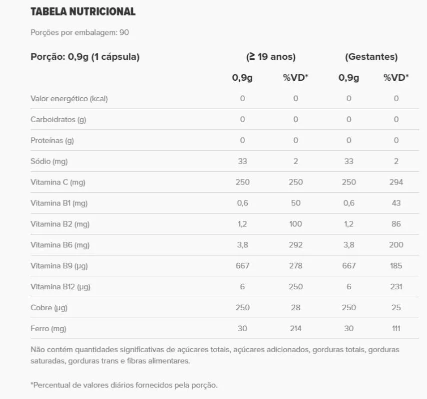 - Ferro quelado para melhor absorção.