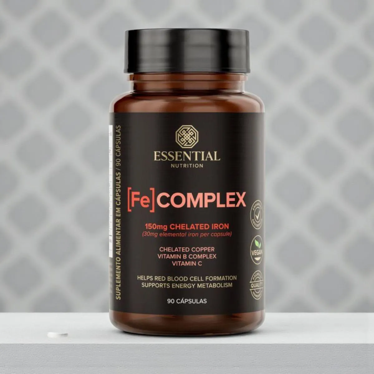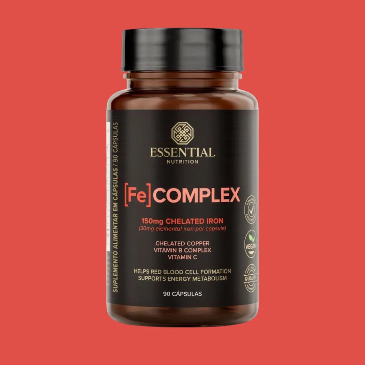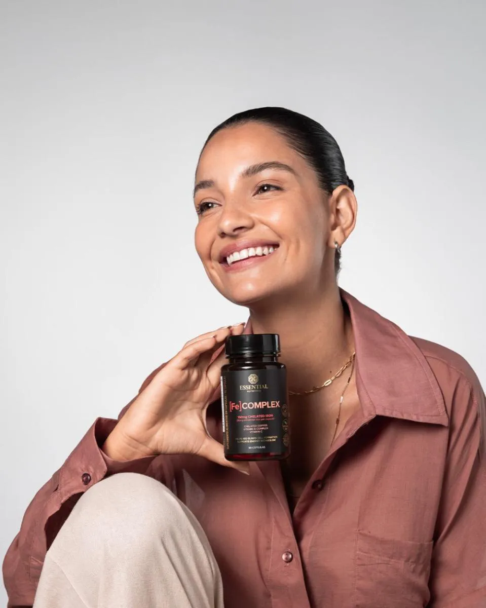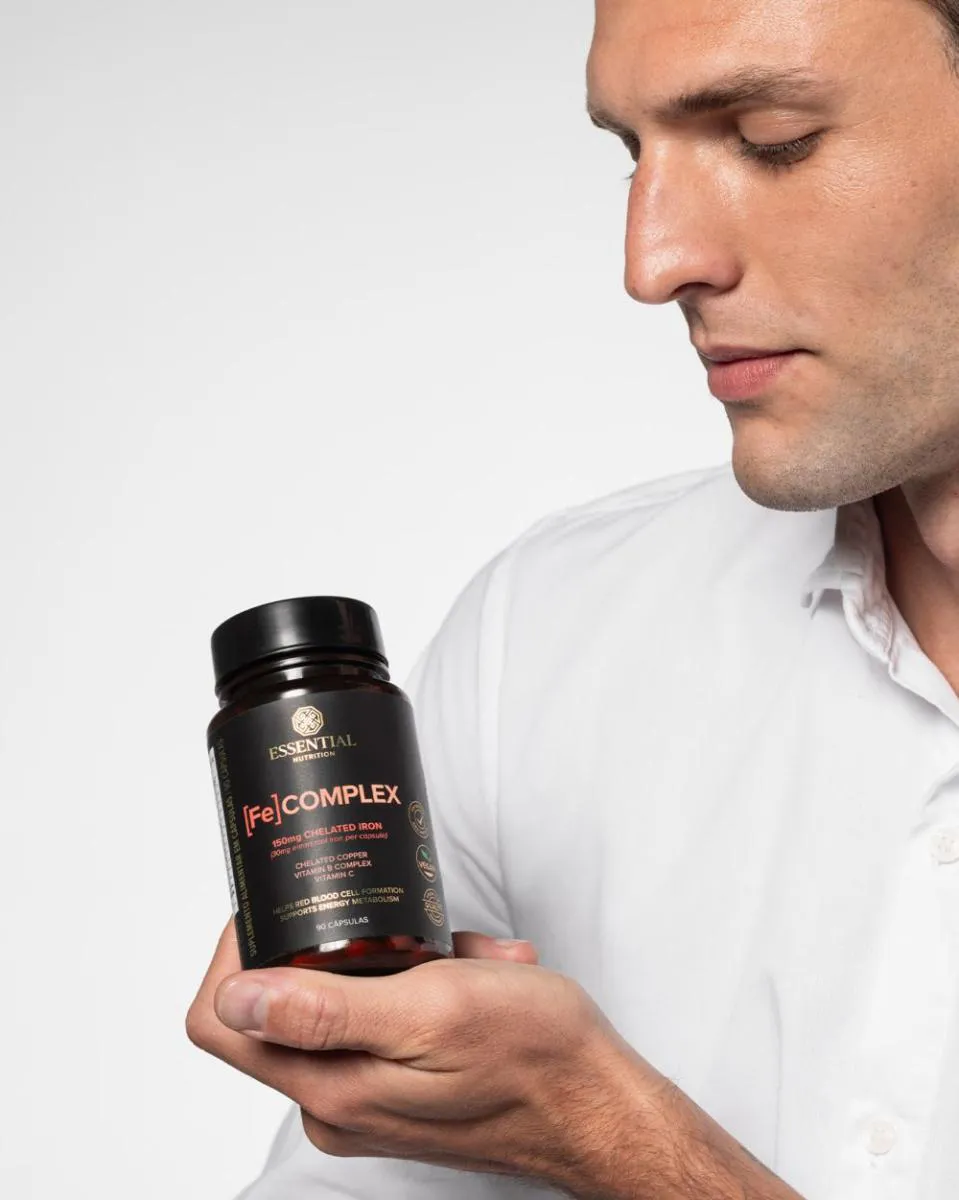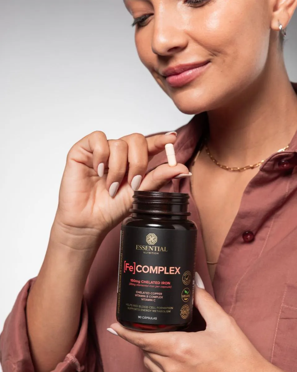 Suplemento de ferro em cápsulas desenvolvido com ferro quelado, vitamina c, cobre quelado e vitaminas do complexo B para uma ação mais completa e eficiente.