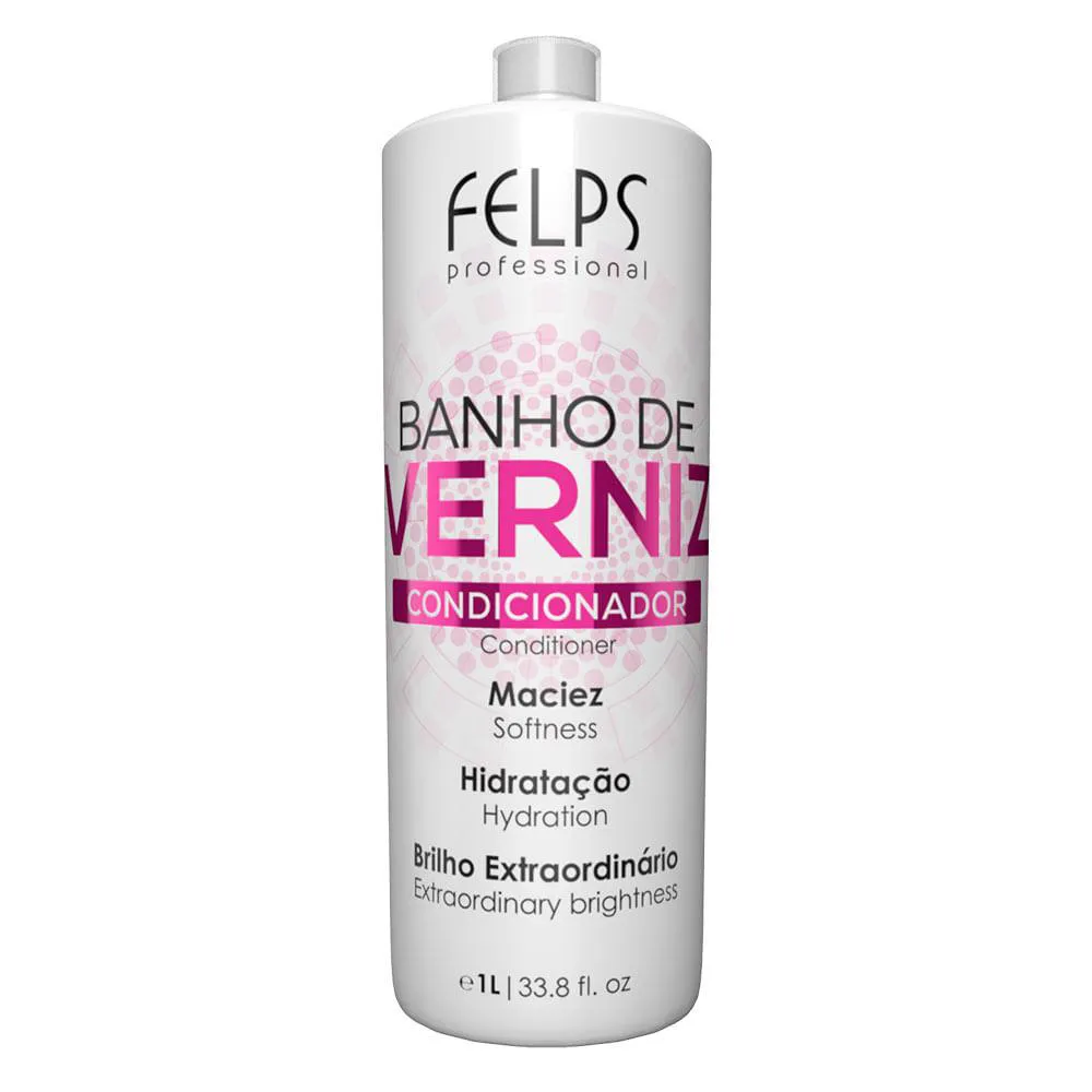 Felps Profissional Banho de Vernizcondicionador para todos os tipos de cabelo. Felps Profissional Banho de Verniz Condicionador desembaraça e hidrata intensamente para mais suavidade e luminosidade aos fios.