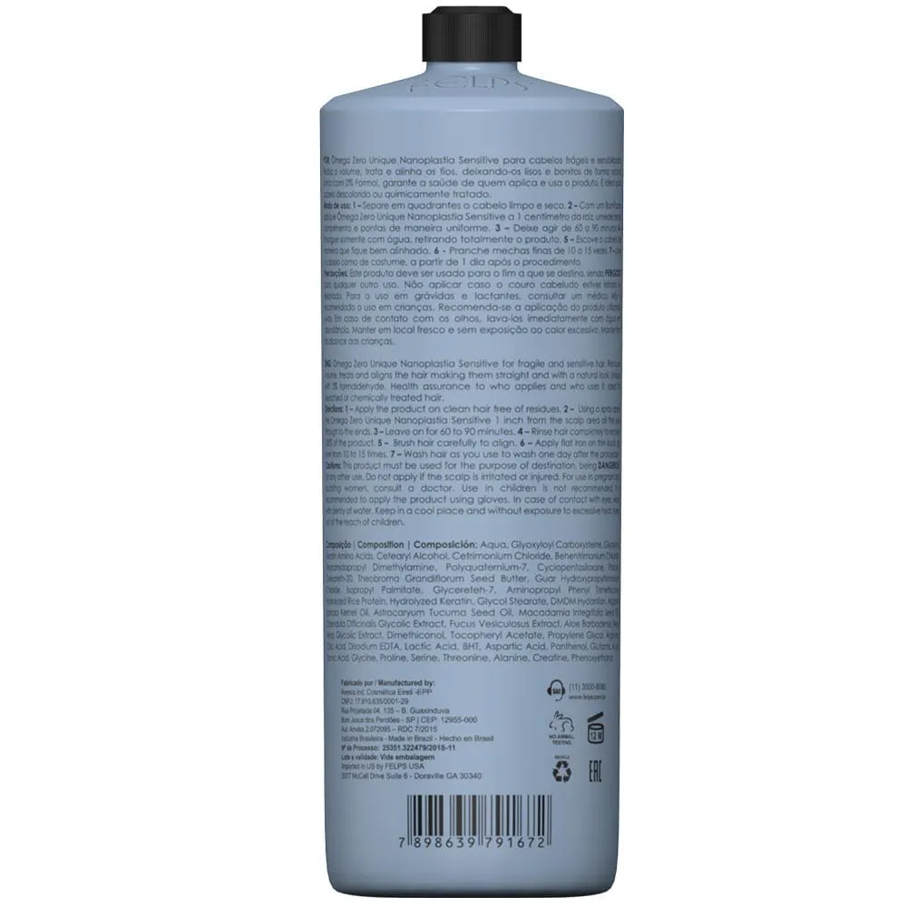 Ômega Zero Unique Nanoplastia Selagem Térmica reduz o volume, trata e alinha os fios, deixando-os lisos e bonitos de forma natural. Única com 0% Formol, garante a saúde de quem aplica e usa o produto. É compatível com todos os tipos de cabelo./ em em sua fórmula um conjunto de nutrientes, enriquecida com colágeno, queratina e silicone, que mantém o alinhamento dos fios de modo saudável.