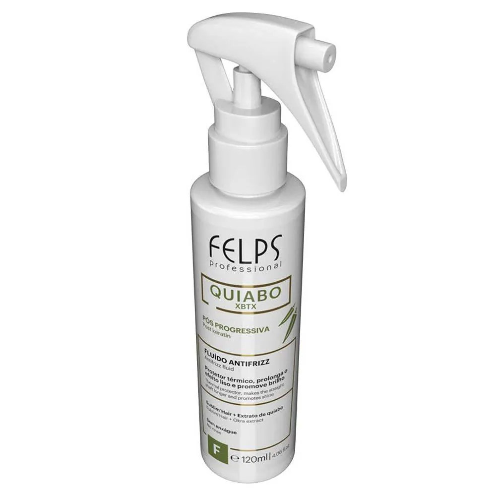 Aplique do comprimento as pontas, no cabelo limpo e úmido. Finalize com o secador e/ ou chapinha. Para melhores resultados, convém utilizar associado aos demais produtos da linha Felps Quiabo Xbtx Pós Progressiva.