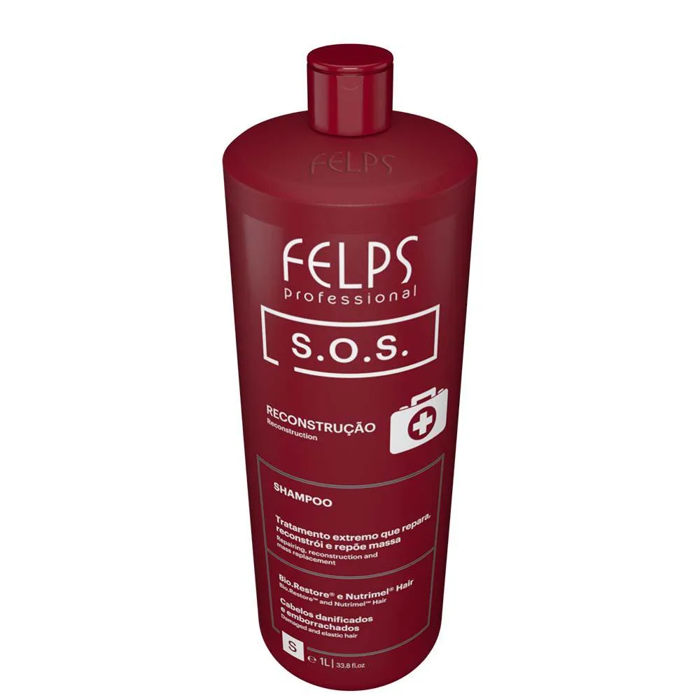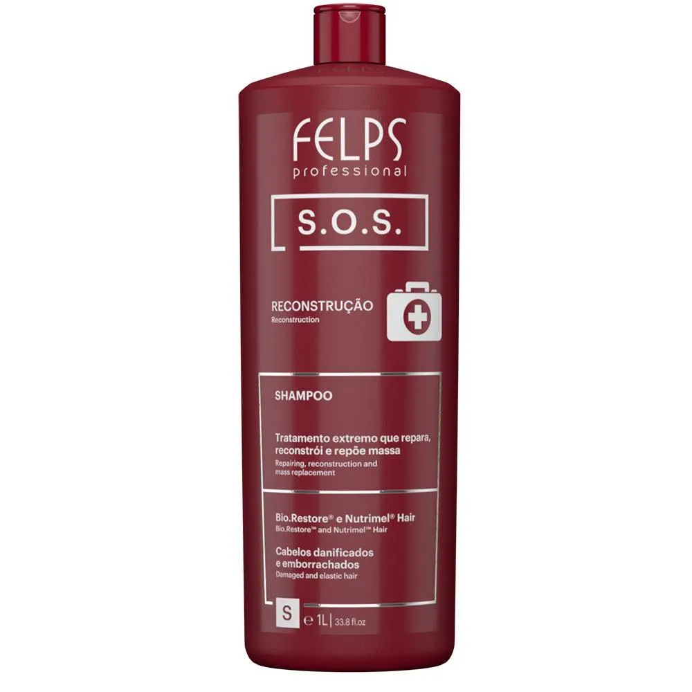 Shampoo para cuidados diários de cabelos danificados. Felps Profissional S.O.S. limpa com delicadeza e garante reparação imediata, além de reconstruir e proporcionar mais força até mesmo aos fios que sofreram com processos químicos extremamente agressivos.
