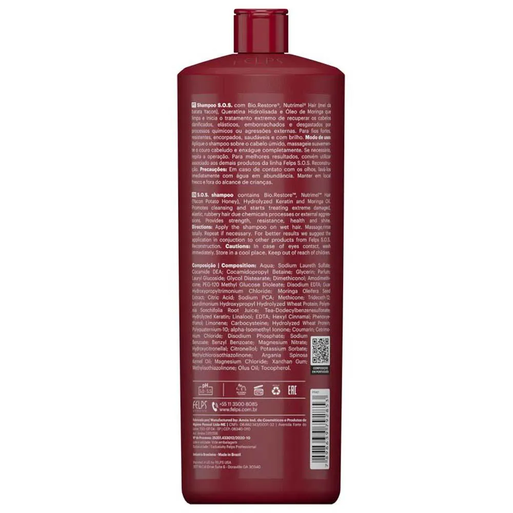 O Shampoo Felps Profissional S.O.S higieniza com suavidade e eficiência, para que o couro cabeludo se mantenha saudável e os cabelos possam ganhar resistência e maleabilidade. Com Óleos de Moringa e de Argan, Keratina Enzimática e Mel de Batata entre os principais ingredientes da fórmula, o shampoo assegura brilho, balanço, toque sedoso e aparência extraordinária.