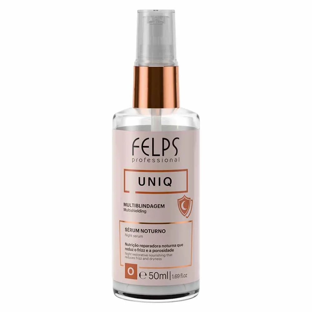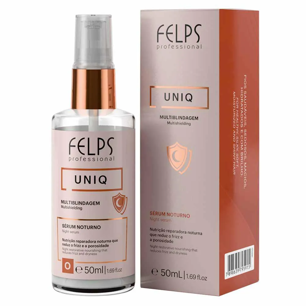O Felps Uniq 6 em 1 Sérum Noturno é um tratamento multifuncional para cabelos, desenvolvido para atuar durante a noite enquanto a pessoa dorme. Seu objetivo principal é transformar a saúde capilar, oferecendo múltiplas ações como redução de frizz, proteção da cor, hidratação profunda, fortalecimento das pontas e proporcionando brilho radiante aos fios.