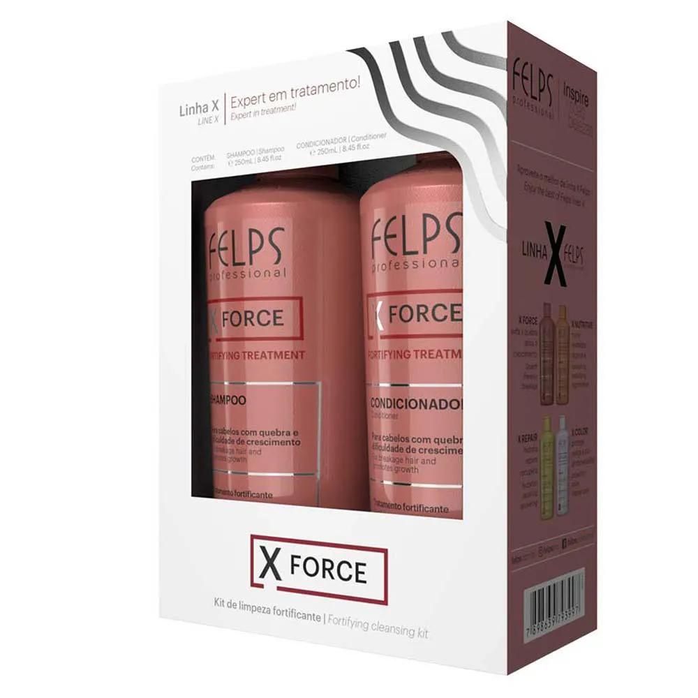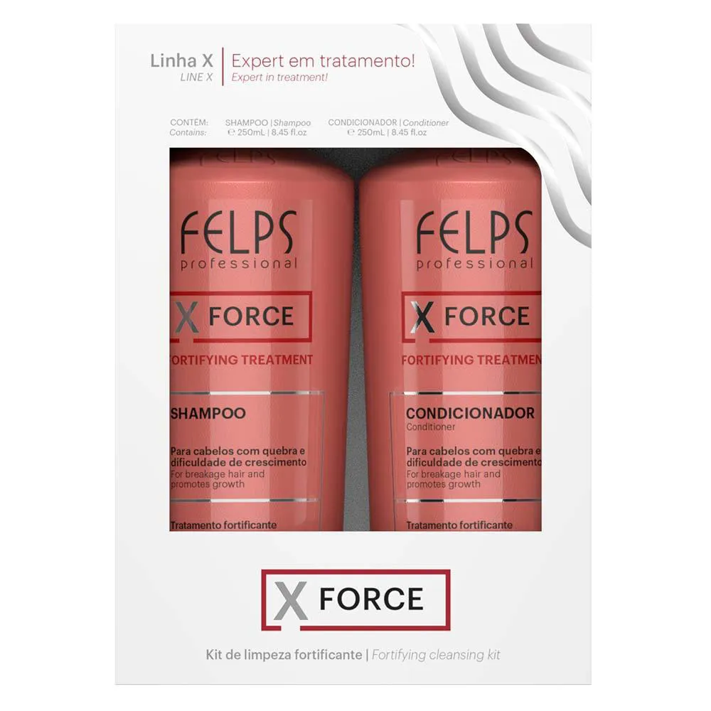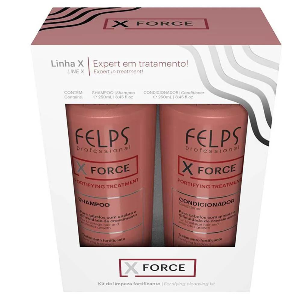 O Kit Felps Profissional XForce traz produtos que garantem mais força a fibra capilar, proporcionam um aspecto mais luminoso e reduzem quebra e o frizz no dia a dia.