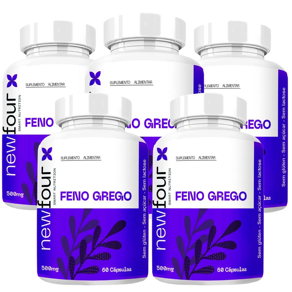Feno Grego Kit com 5 Potes com Total de 300 Capsulas