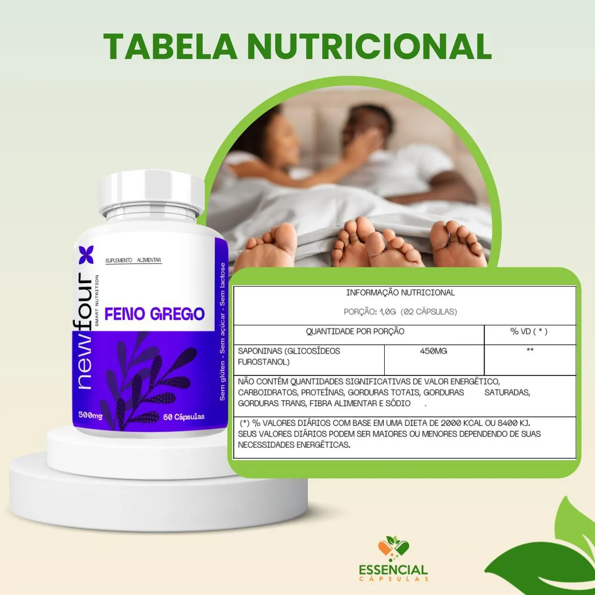 O Feno Grego é um suplemento alimentar natural composto pela planta Trigonella Foenum-Graecum, apresentado em cápsulas. Serve como uma opção natural para pessoas saudáveis que buscam melhorar o bem-estar e a performance diária, fornecendo nutrientes complementares à alimentação.