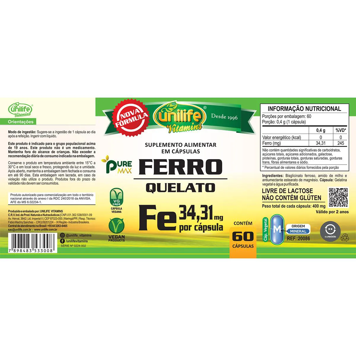 Ferro Quelato Fe Unilife 60 Cápsulas