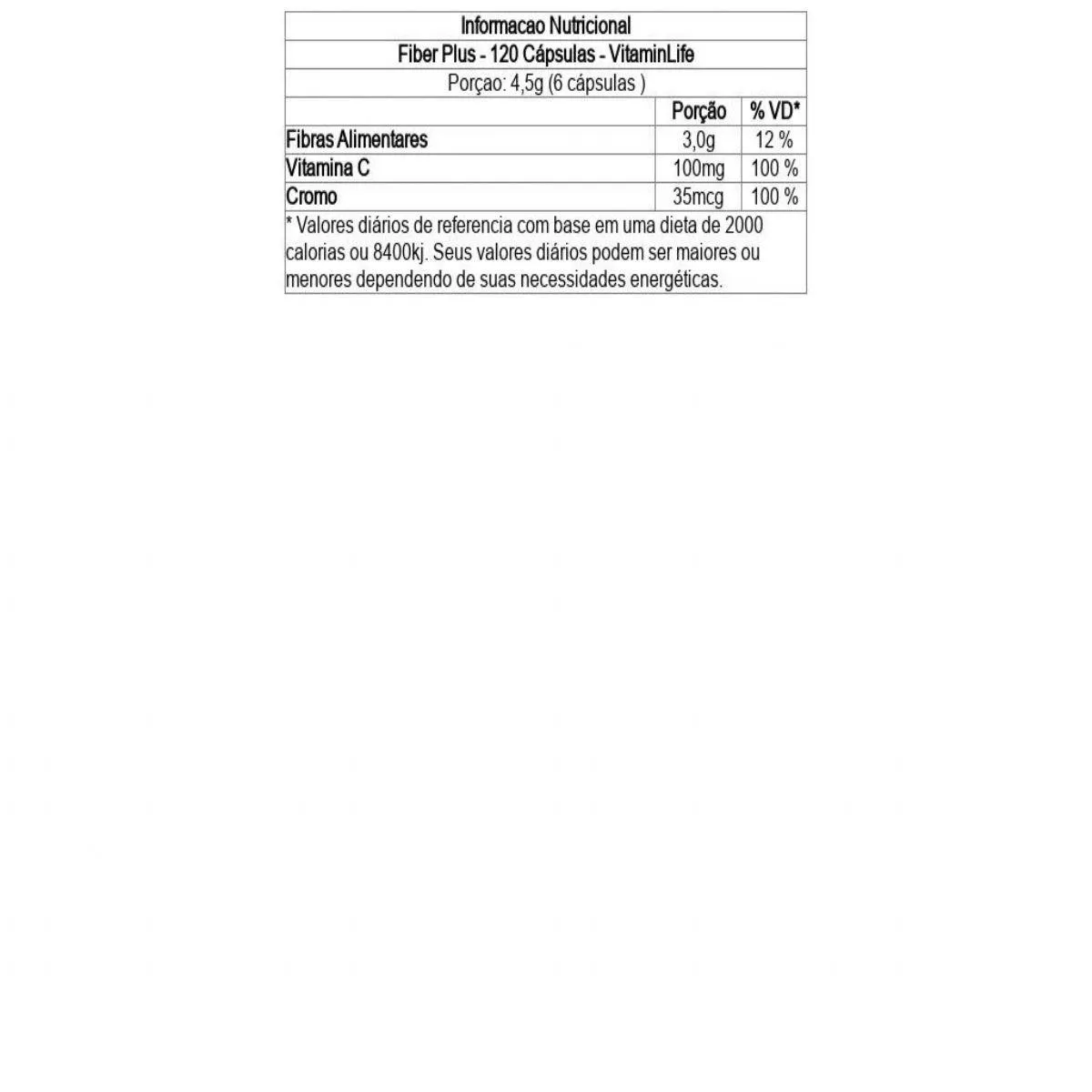 Fiber Plus - 120 Cápsulas - Vitaminlife