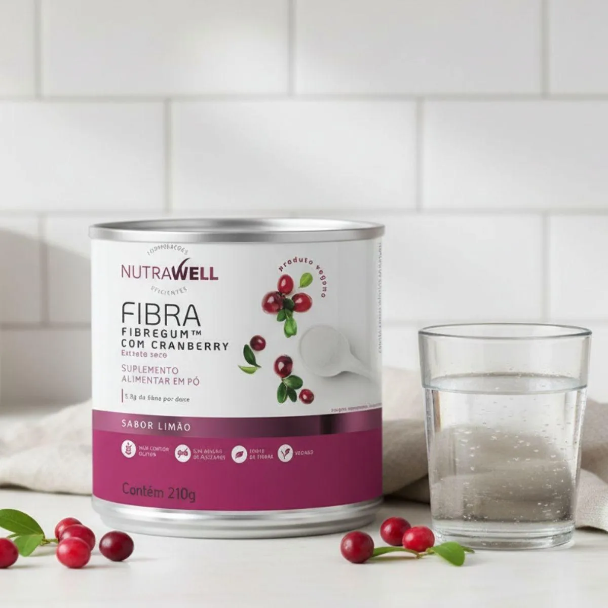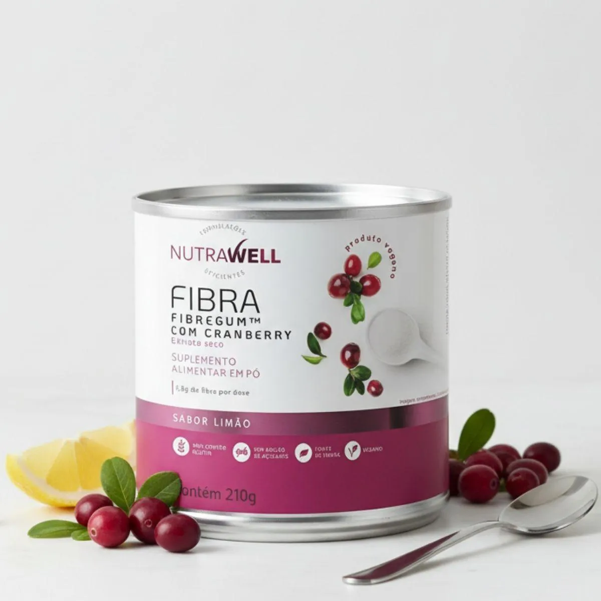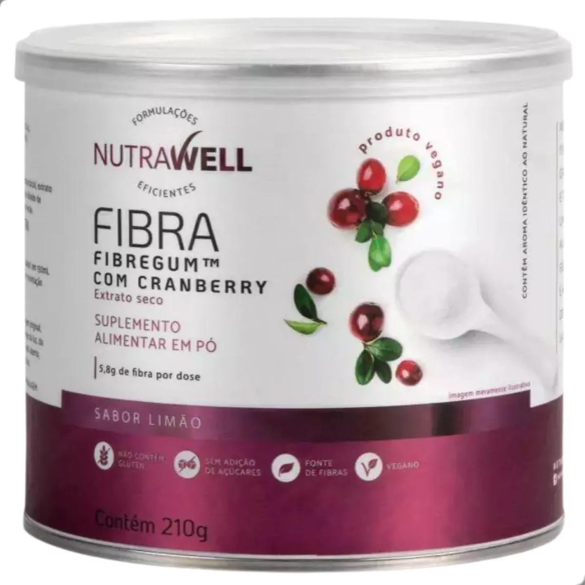 Fibra Alimentar Fibregum 5,8G com Cranberry 210G Nutrawell Limão